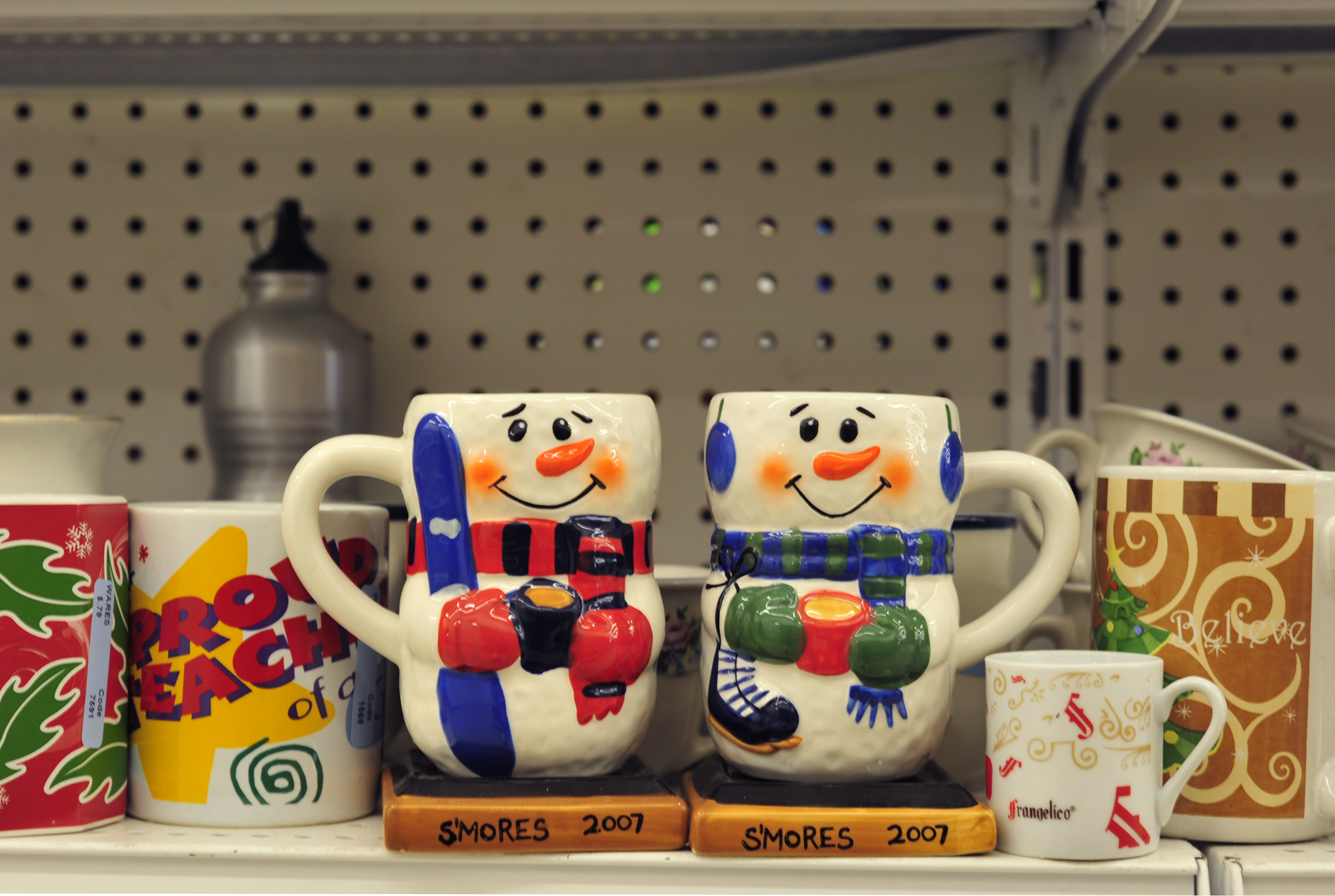 You can also find a whole aisle dedicated to coffee mugs and glasses. Pick one up for the coffee-lover on your list and pair it with a few bags of coffee for a cute themed gift. It would probably be a good idea to wash it before giving it, but it can be our little secret that you bought part of your gift from a thrift shop.