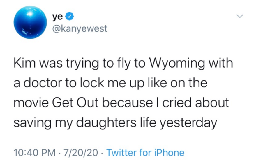 In the since deleted tweets, Kanye said that he wanted to divorce Kardashian, called her mother, Kris Jenner, “Kris Jong-Un,” and said that the Kardashian family were attempting to force him to get psychiatric help.