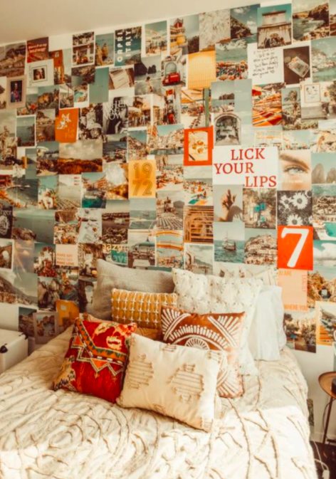 Unless you’re the type of person with a minimalistic style of room design, having a bunch of blank walls can make a room feel bare. Hanging up wall art, posters or even a wall collage can change a whole space and even give you a bit more inspiration.