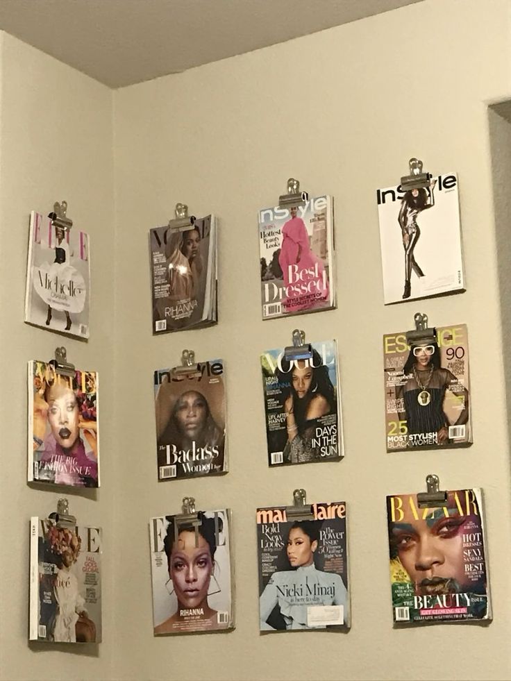 Wall art is nothing new for the average crafter. Posters, painted canvases and banners string across walls. Fairy lights and star garlands hang above canopy beds. These are all great decor pieces but there are other items that should be considered too. Instead of keeping them on a desk, try clipboards as a back for your favorite magazine covers.