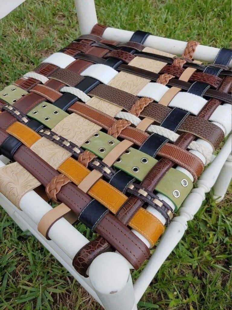 For the next idea, this magazine DOES NOT condone the destruction of fabulous belts. However, we will overlook it this time for the sake of craftiness. Lawn chairs can be broken easily, especially if they have a weaker exterior. Belts with leather are strong and can act as a stand in for other weaved materials. Try crossing the belts to cover missing holes in the furniture.