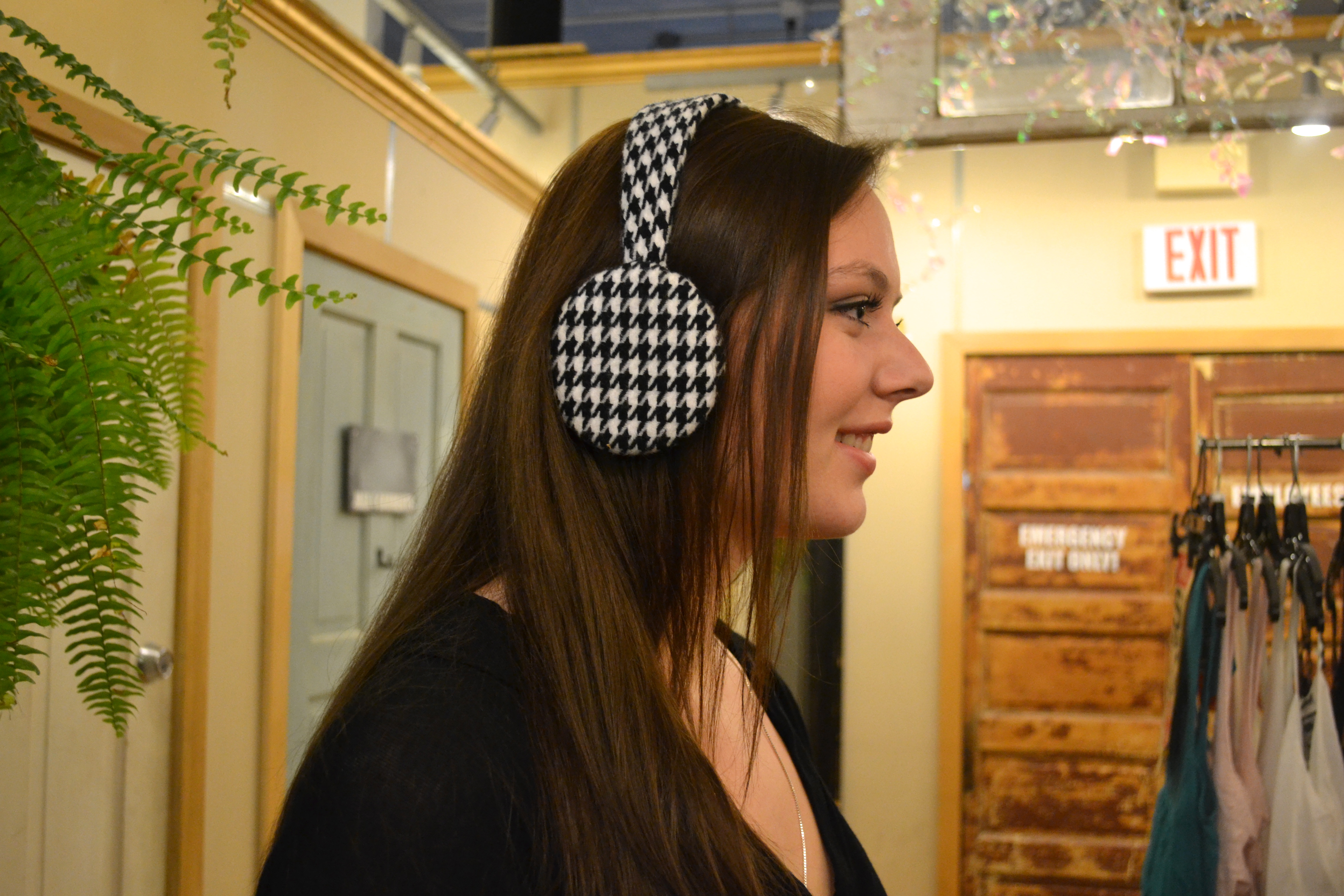 At a relatively low price, it doesn’t hurt your wallet too much to get this retro styled ear muff. The houndstooth print is perfect to give that dreary winter coat some gild. Modeled by People’s Nation employee Emily Davis.