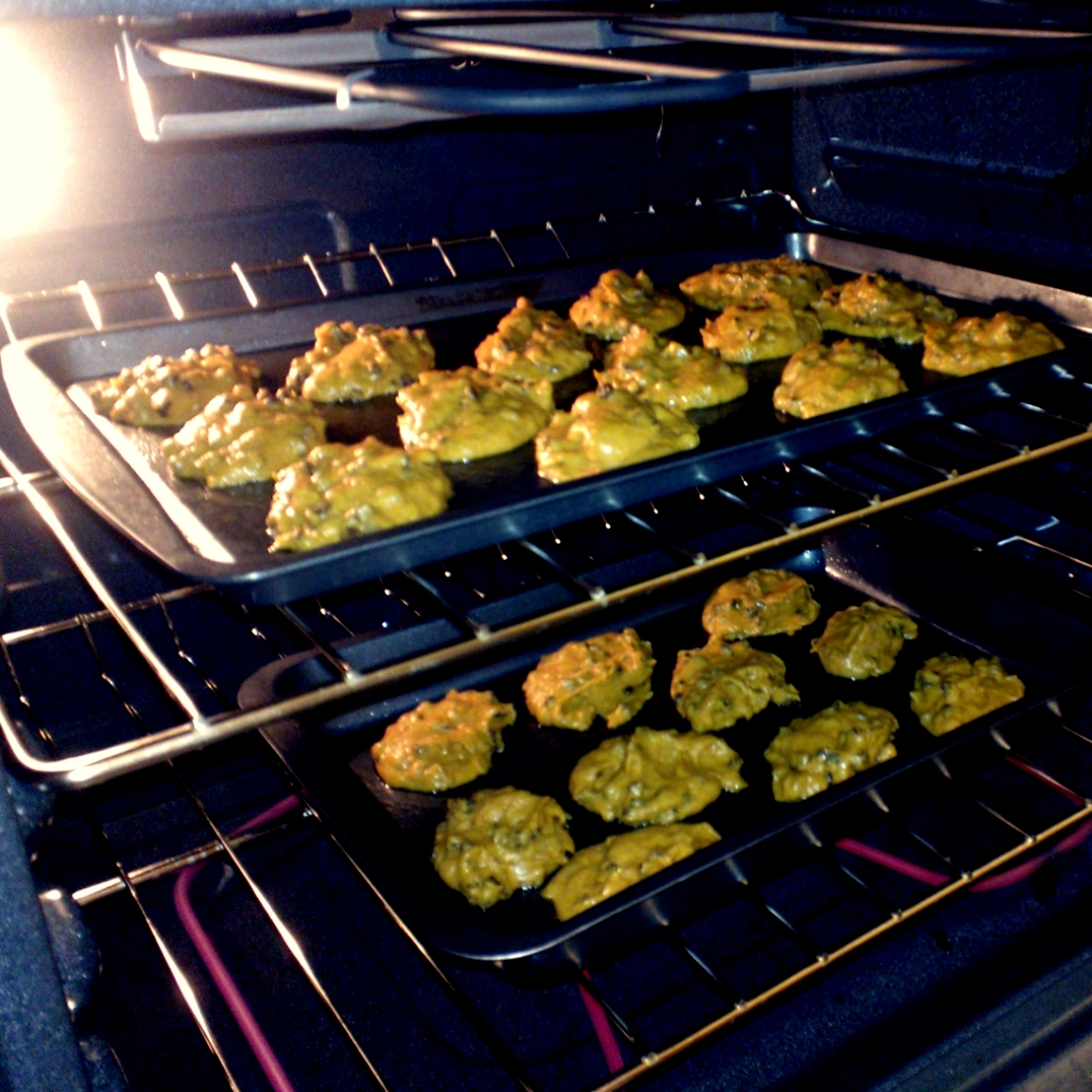5. Spray cooking sheets with non-stick spray. Use tablespoon to scoop mixture into cookies. (Don’t make them too big – the cookies expand while cooking!)