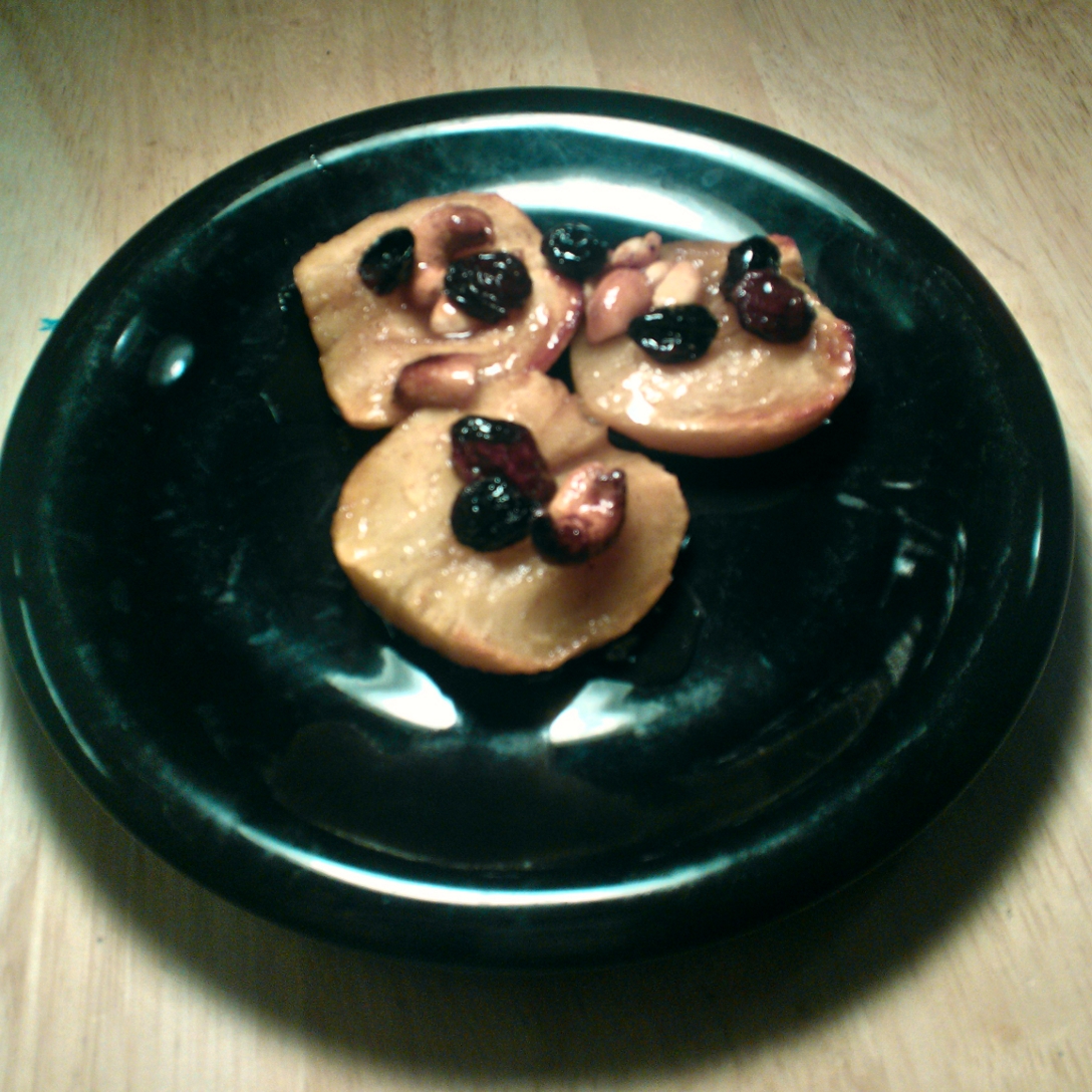 4. Fill cavities in apples with optional ingredients and use a spoon to cover them with syrup. (Make sure to fill the bottom of the pan with syrup too to ensure the apples get seasoning from the base up!)