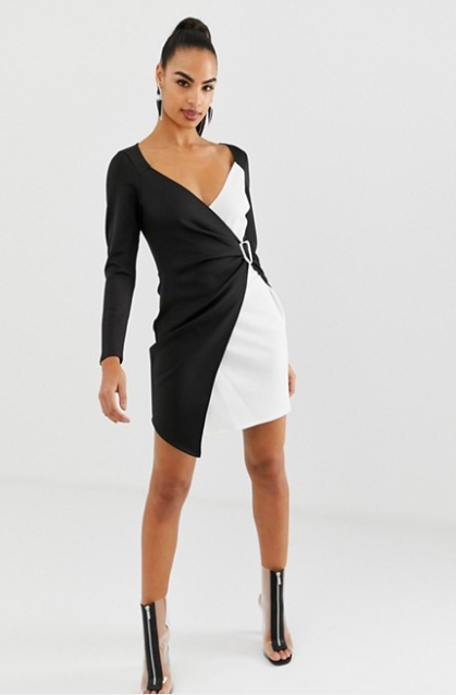 This ASOS dress incorporates the sleekness of the black and white pattern from Alessandra’s dress but is more practical for a night out.