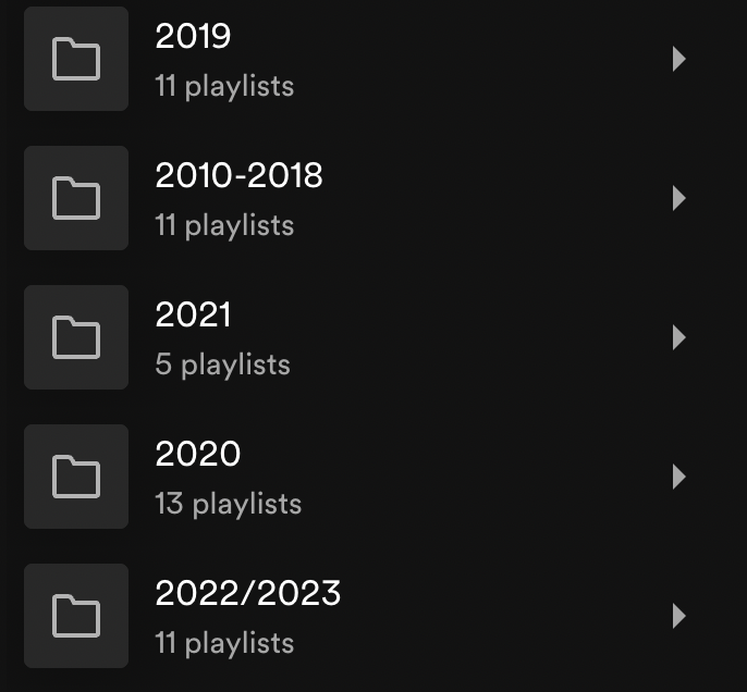 Perfect for the task at hand, Spotify recently developed an option to group playlists into folders. This feature allows users to house playlists under one subject; whether that be genre, mood, or a year’s worth of monthly playlists.