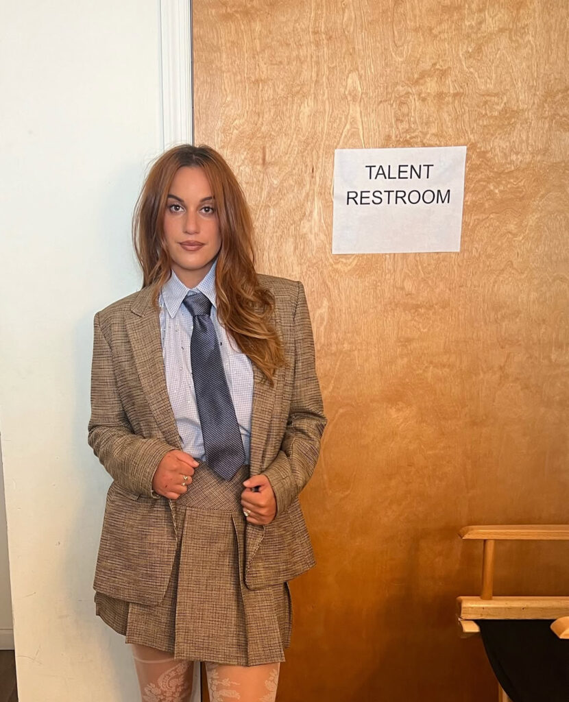 You can even see Bennett on Jake Shane’s podcast, Therapuss, in her signature look: a tie, collared shirt and blazer.