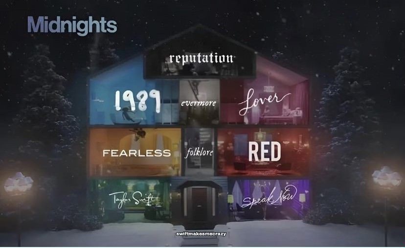 In Swift’s music video for “Lover”, a single off her 2019 album, Swift takes the audience through a house with nine rooms, each characterized by a different color. Fans have theorized that each of the rooms represents one of her albums based on their colors. Now that Swift has announced Midnights, fans have realized that her new album is the finishing touch to the house: the winter’s midnight sky.