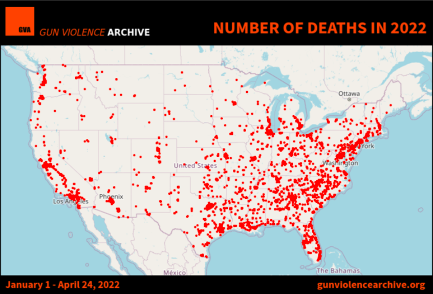 The Gun Violence Archive defines a mass shooting as an incident where at least four people are shot, not including the shooter. As of April 23, there have been 21 more mass shootings following the attacks on a Brooklyn subway car on April 12.