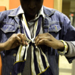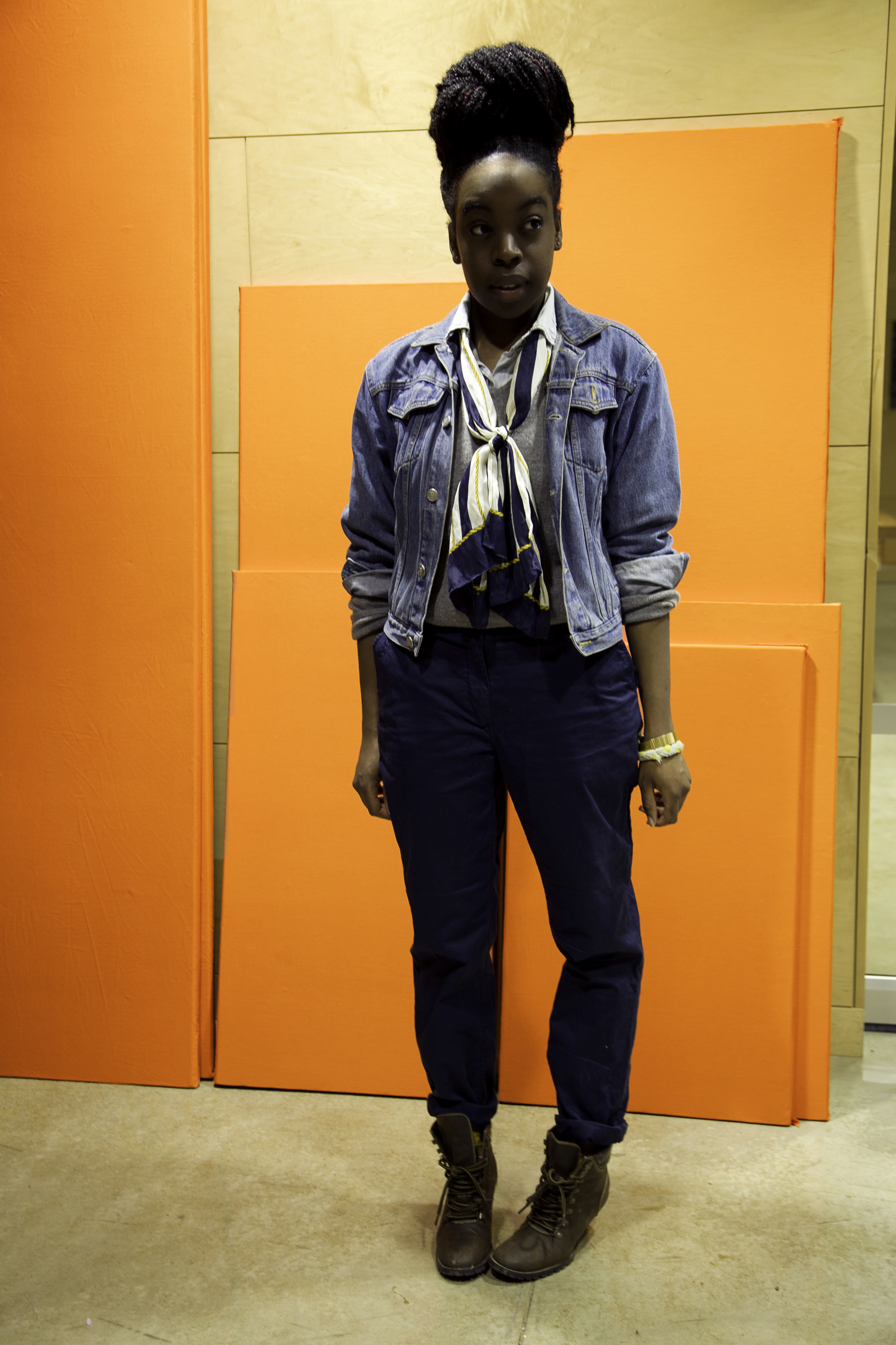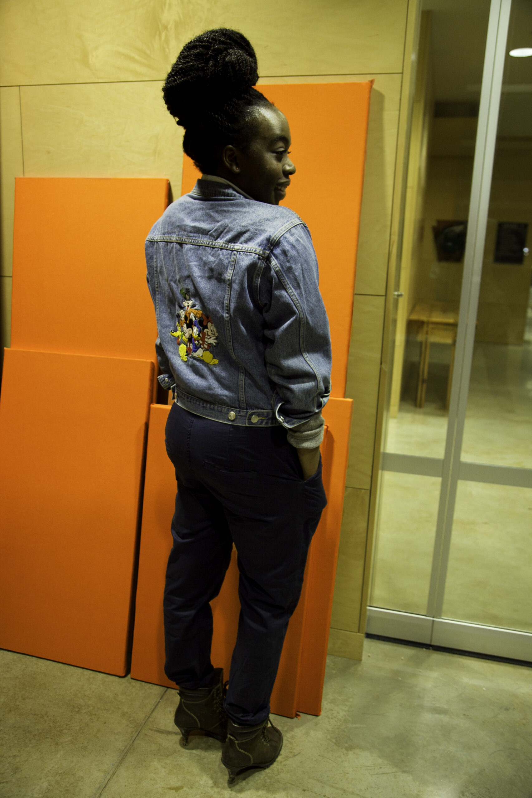 Yes, that’s a play on YC’s “Racks on Racks,” but I’ve always enjoyed mixing different denim washes. Right down to my DIY braided bracelet, made from old cut-up jeans and a neon-colored shoelace. I start off with a lighter wash (i.e. my light-blue denim button-up), working my way up by layering on darker washes(i.e. a vintage Disney denim jacket) to see what works best. There’s a lot of “trial and error” but at the end of the day, there’s no real formula — just find the right balance of blue.