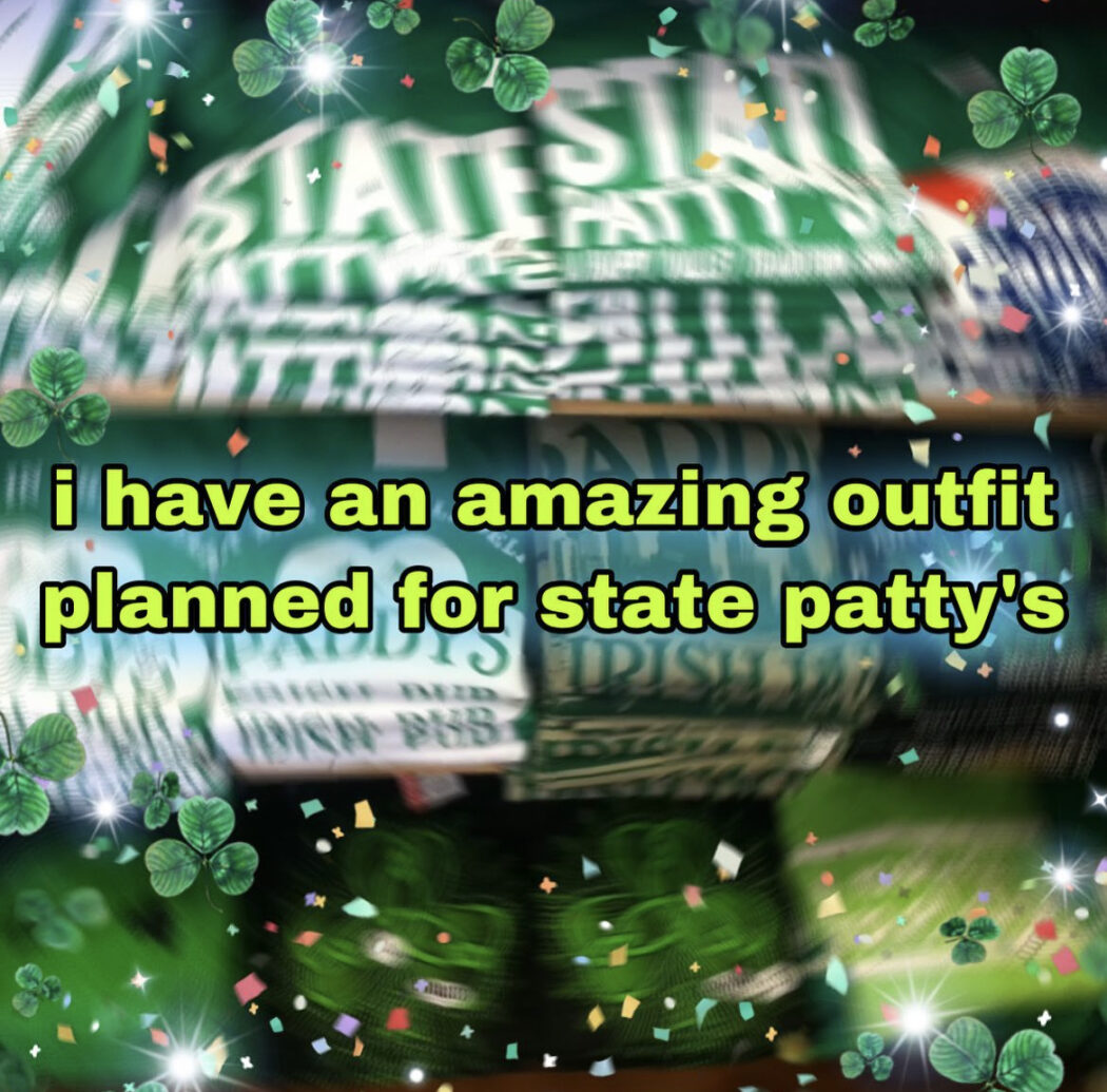 And to make things even more exciting, State Patty’s high expectations call for equally impressive outfits. It’s no surprise that Penn Staters go all out for the annual holiday — partygoers arrive in head-to-toe green, showing off their outfits with a whole lot of PSU pride.