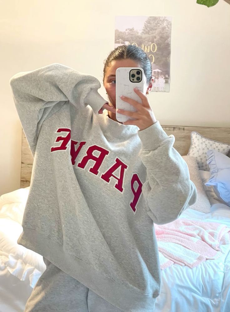 Parke’s catalog includes a simple yet staple look that can make someone look put together even on their worst day. The brand is easily spotted and sells out easily with every drop, including their Valentines Collection and new Spring Collection that just dropped recently. The sweatshirts are priced around $125 a sweatshirt and $100 for sweatpants. The brand is geared towards girls in their upper teens and twenties, yet with that price range, how many can they really reach?