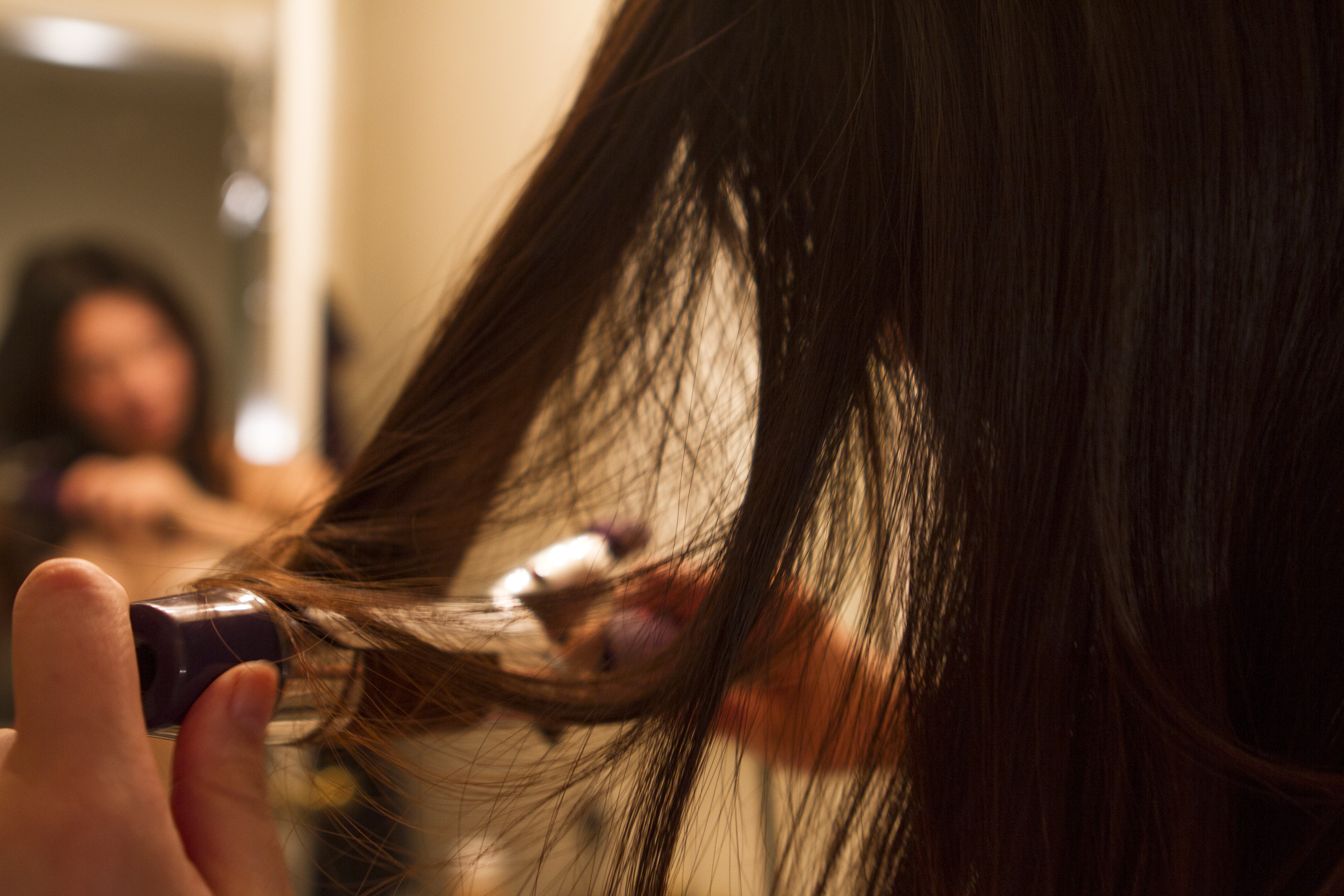 “So many girls make the mistake of starting from the bottom and rolling up. However, the problem with that is your curls get bottom-heavy and pull down, eventually flattening the style.” DiBileo says. She also says you should curl your hair in sections.