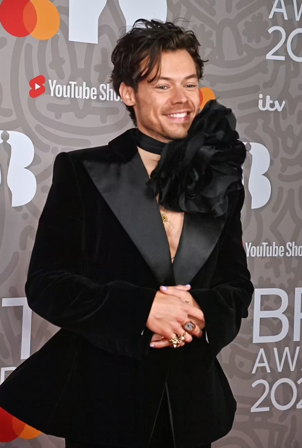 Breaking gender norms, Harry Styles wore a black velvet suit — a Nina Ricci by Harris Reed piece — at the BRIT Awards. Utilizing his extravagant style to his advantage to make the look his own, Styles wore oversized satin lapels, beautifully balancing the flare of a peplum around his waist.