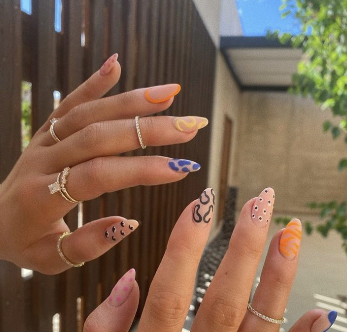 The print craze doesn’t just end with clothing pieces- mismatched pattern nails are at the forefront of current nail designs. Here’s one nail design that you must show to your nail technician: