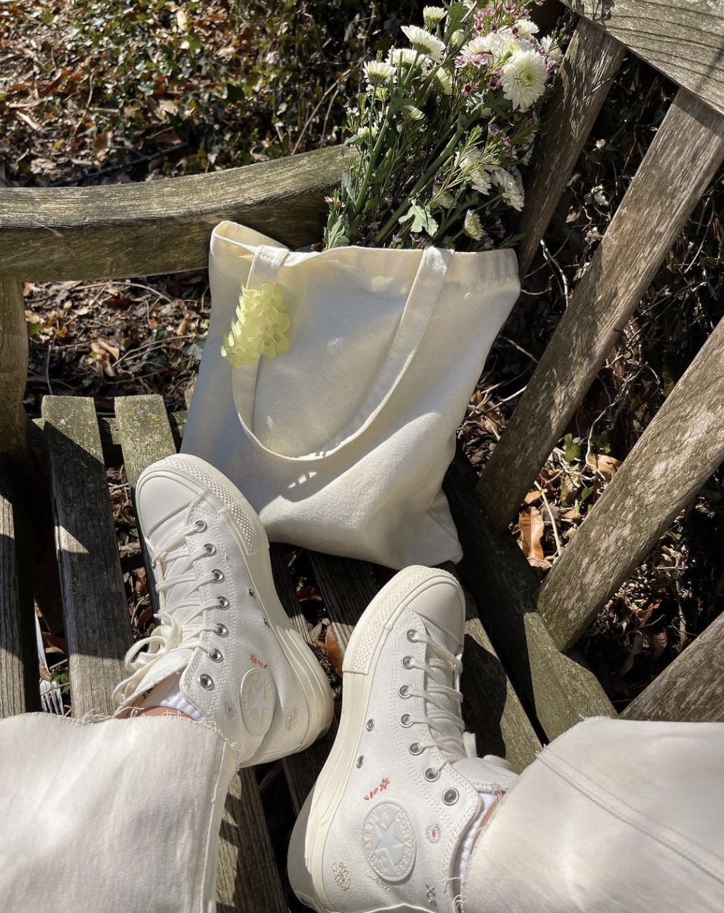 These off-white embroidered high-tops absolutely scream spring! We’ll admit, these are definitely for the floral enthusiast and are pretty straightforward when it comes to making a statement this season. They’re the perfect combination of daisies and dahlias which add a sweet accent to the classic lace-ups look. You can find these here just in time for your next spring fit check photo op!