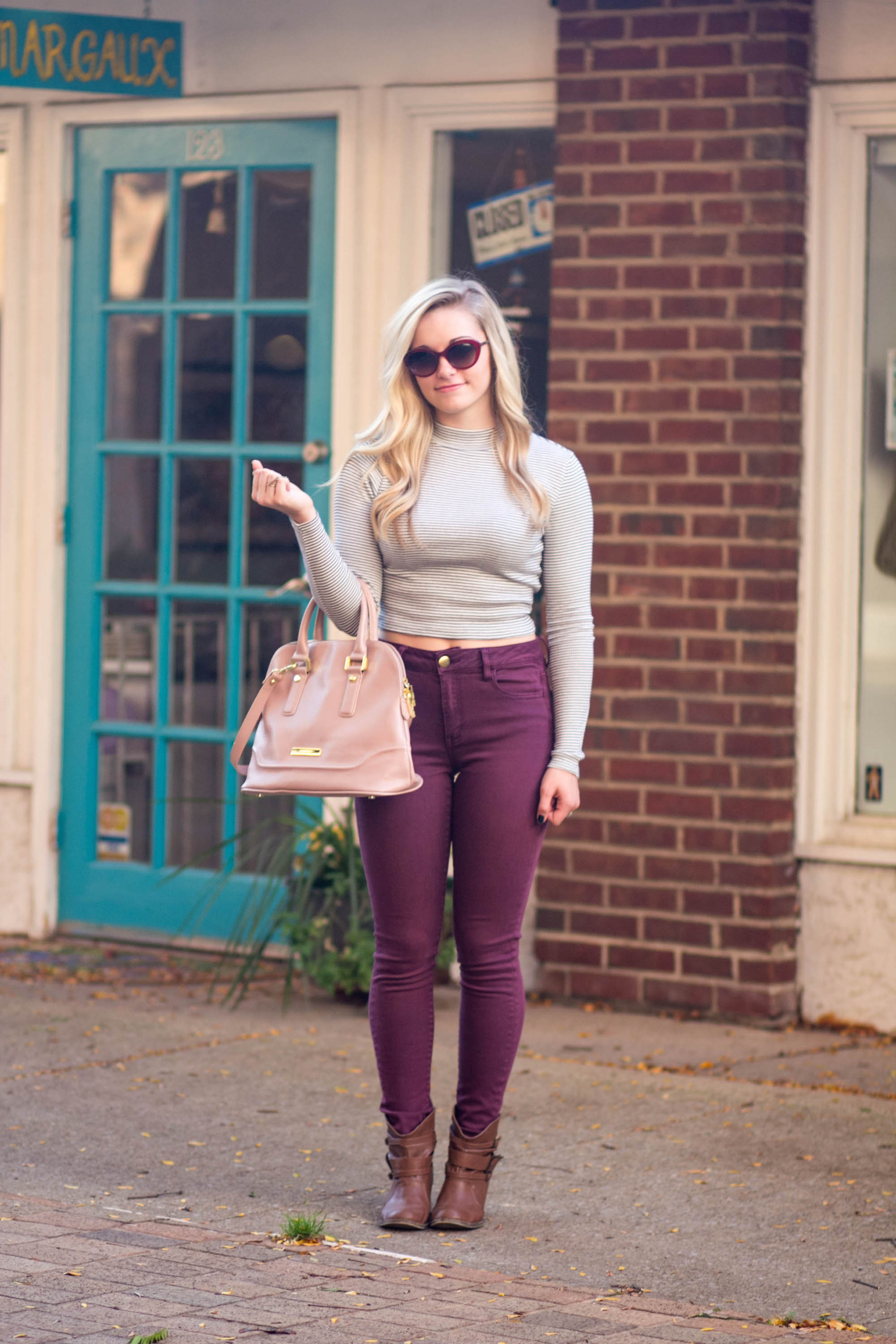 This everyday look is great for going to class or running errands on the weekends! The crimson pants create an autumn inspired look and can be paired with a variety of colors. Just like Taylor, we would add a short boot to this outfit, a great shoe for the brisk temperatures of State College!