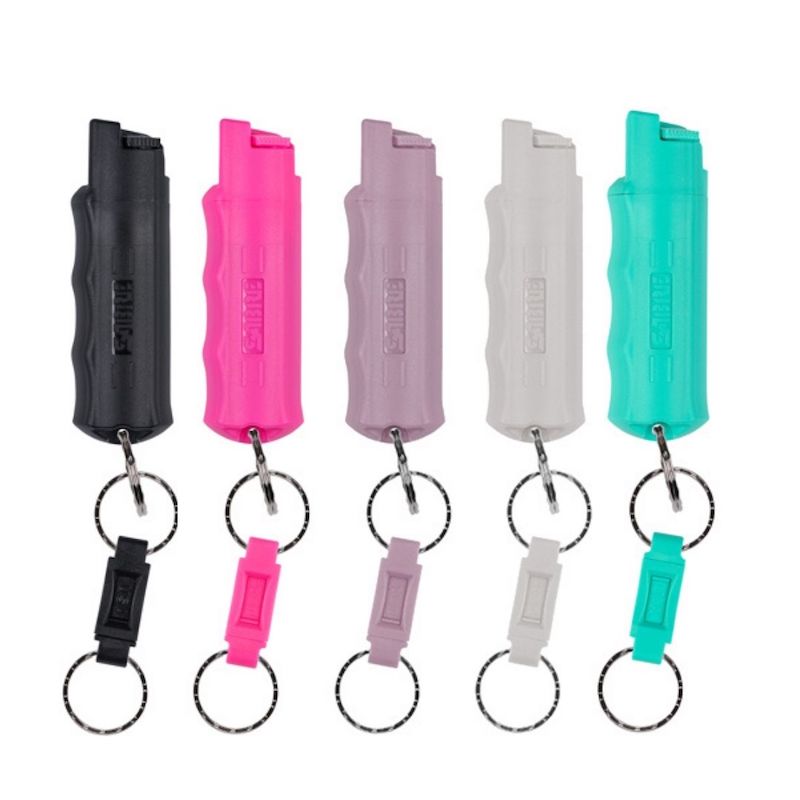 Using your thumb gives you more control and reduces the chances of an attacker knocking it out of your grip. Pepper spray can be used up to 10 ft away and has a shelf life of about 2-4 years, depending on the brand.