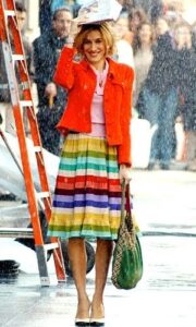 Your style is the epitome of classic and chic. Charlotte is the most conservative, per se, character on Sex and the City, and tends to her self-image and representation very deeply. She’s modest, yet feminine, but still wears outfits that show off her best features. If you’re a fan of fashion and beauty bloggers, you may want to keep up with them to get outfit inspiration similar to that of Charlotte. A solid color blouse with a pencil skirt and flats is your go-to outfit if you resonate best with Charlotte’s character.