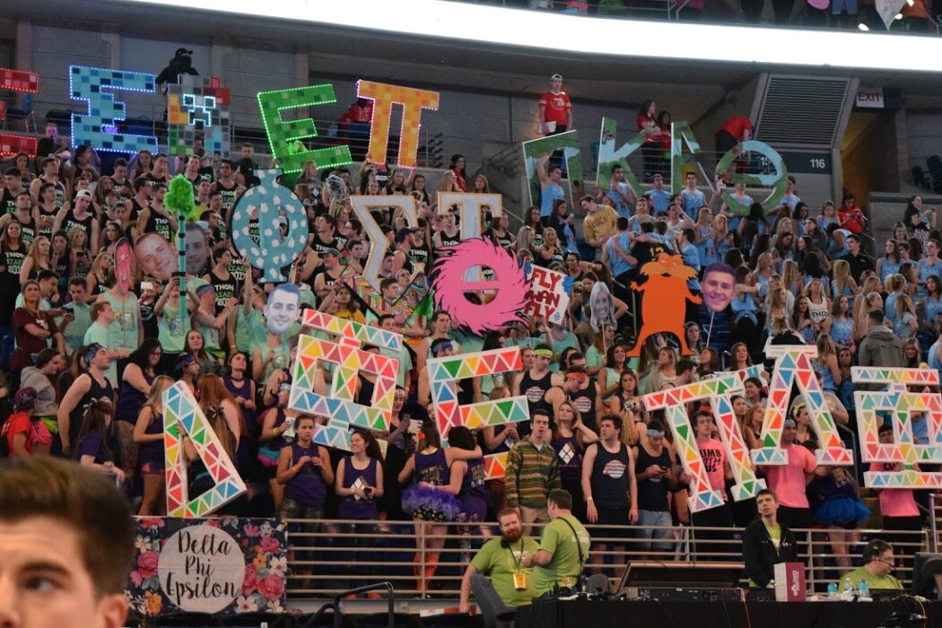 Students orgs and Greek life spend months raising money for THON. They go canning and hold fundraisers at their houses–such as a puppy fundraiser where you can pay a couple dollars to be around dogs. So when THON finally comes around, its no surprise that these students do their best to represent their group in the stands.