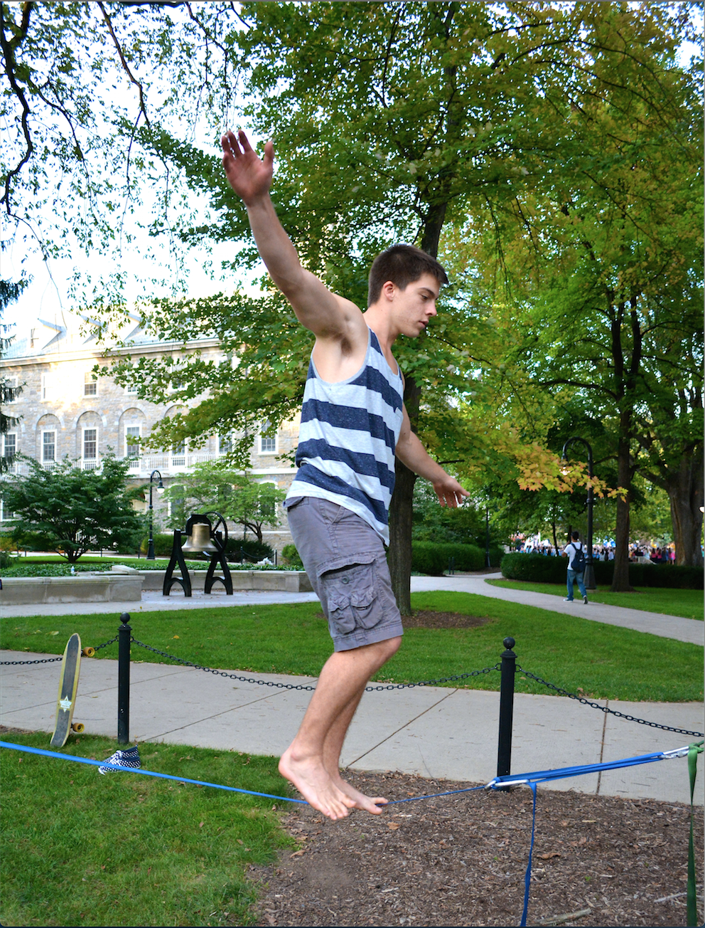 What most students practice at Penn State – where the canyons aren’t quite as grand – Nader refers to as urban-lining, a version of slacklining that will guarantee you’ll remain in one piece even if you happen to take a wrong step.