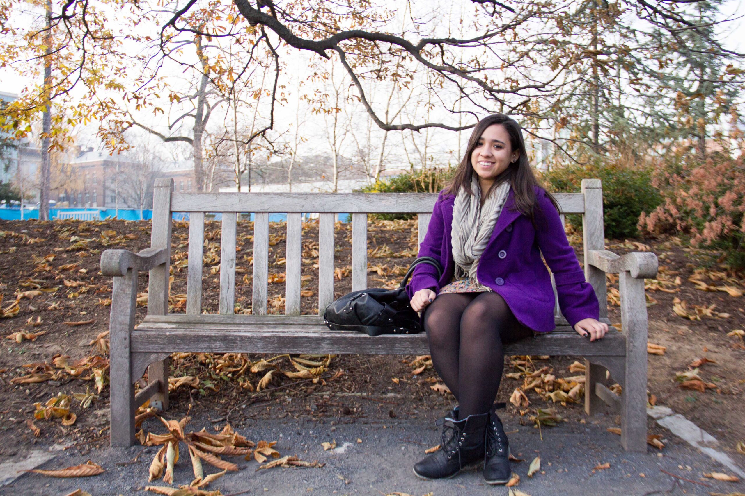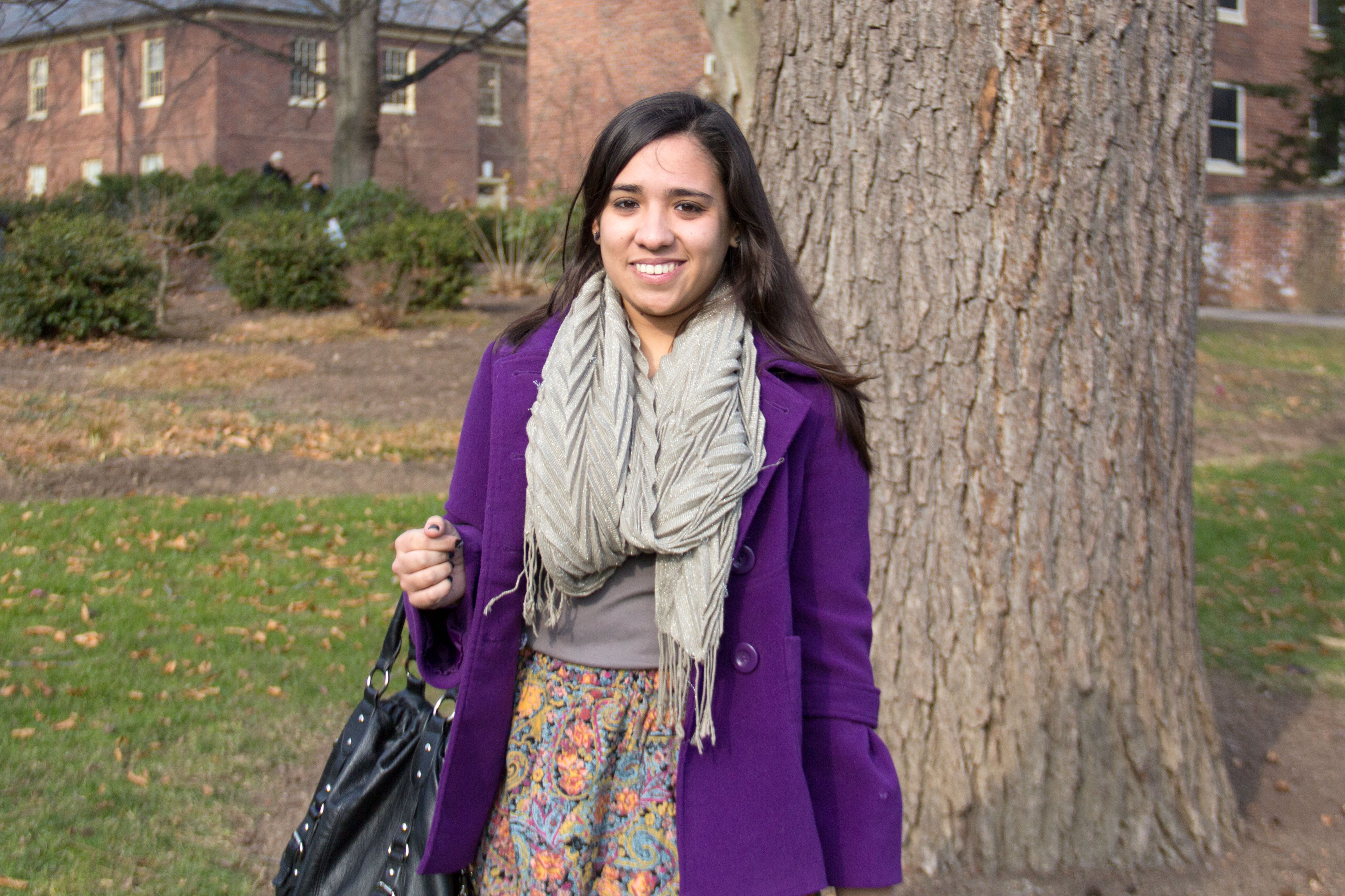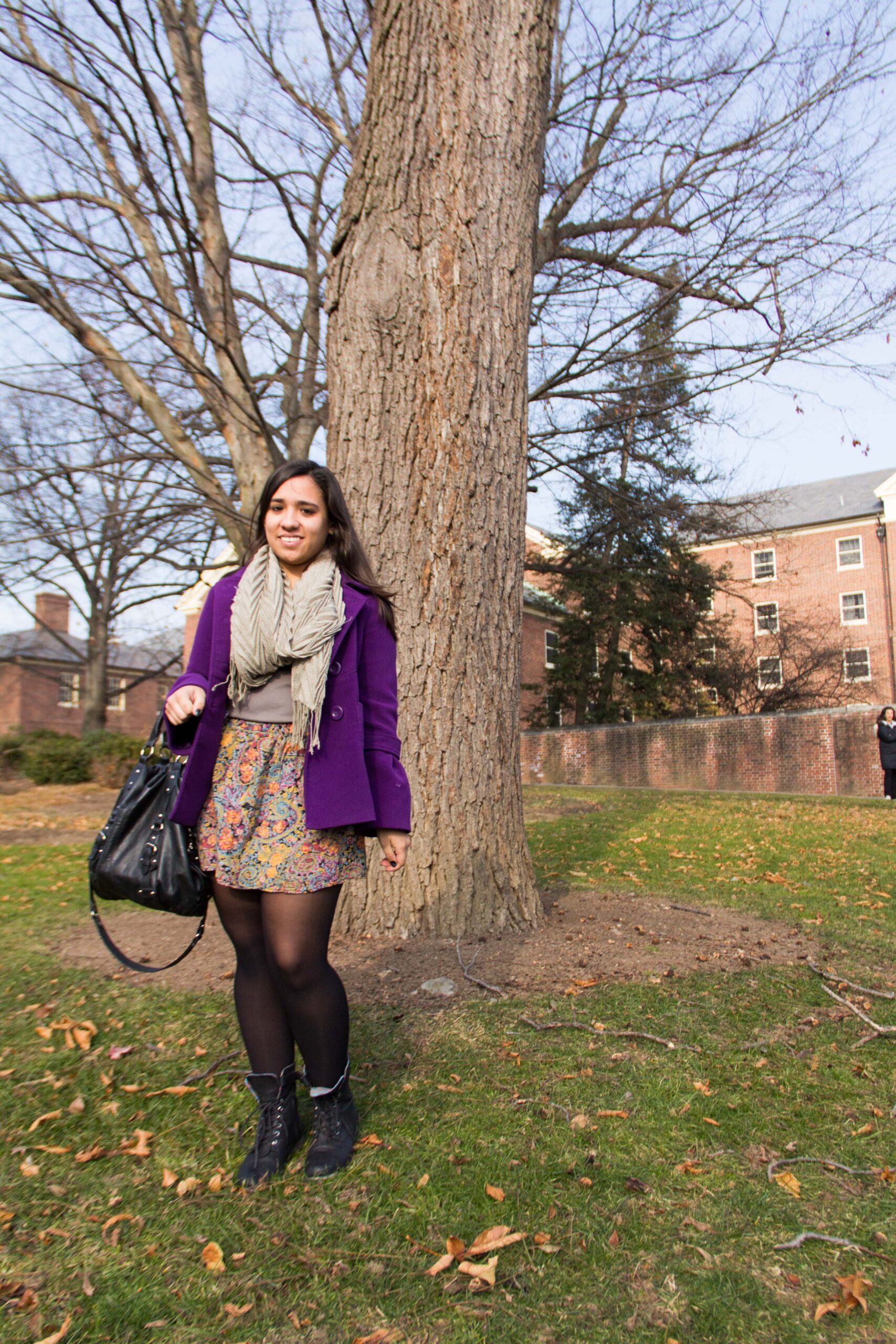 What She’s Wearing: boots, Madden Girl; skirt, Billabong; shirt, Victoria’s Secret; scarf, Target; coat, old purchase; bag; Sabina.