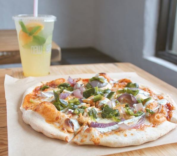 Every pizza is tossed, topped and baked in just around ten minutes, whether it’s Snap Custom Pizza’s unique Mac and Cheese pizza or their Mediterranean salad inspired pie. The pizza is served on wooden boards in the white rustic-style restaurant, and the food on their menu includes grain bowls for a less indulgent option and mozzarella breadsticks, reminiscent of the ever-popular pokey stick.