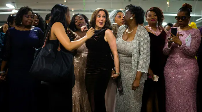 “Having my AKA sisters behind me, seeing them at events across the country, is a reminder to me as I run for president, because I know if I’m not on the stage, there’s a certain voice that will not be present on that stage, a voice that must be heard,” said Harris.