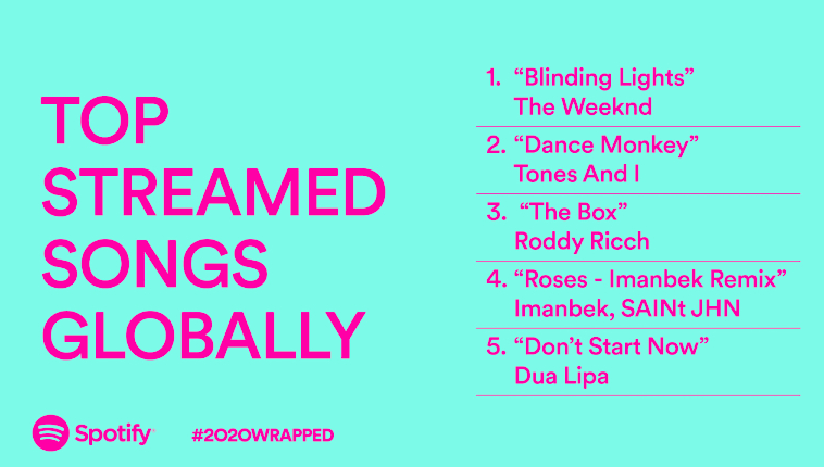 Top artists consisted of Bad Bunny, Drake and Juice Wrld. Spotify also had a list of top 10 songs for the year, which included several hits from artists like the Weeknd and Post Malone.