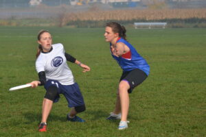 In the fall, they perfect throwing the disc and other basic skills, including the “stack,” an offensive technique, as well as various types of defense. Baumes describes the fall as a “clean slate.” It’s still competitive, but the spring is much more serious — only the top 18 girls will compete in spring tournaments.