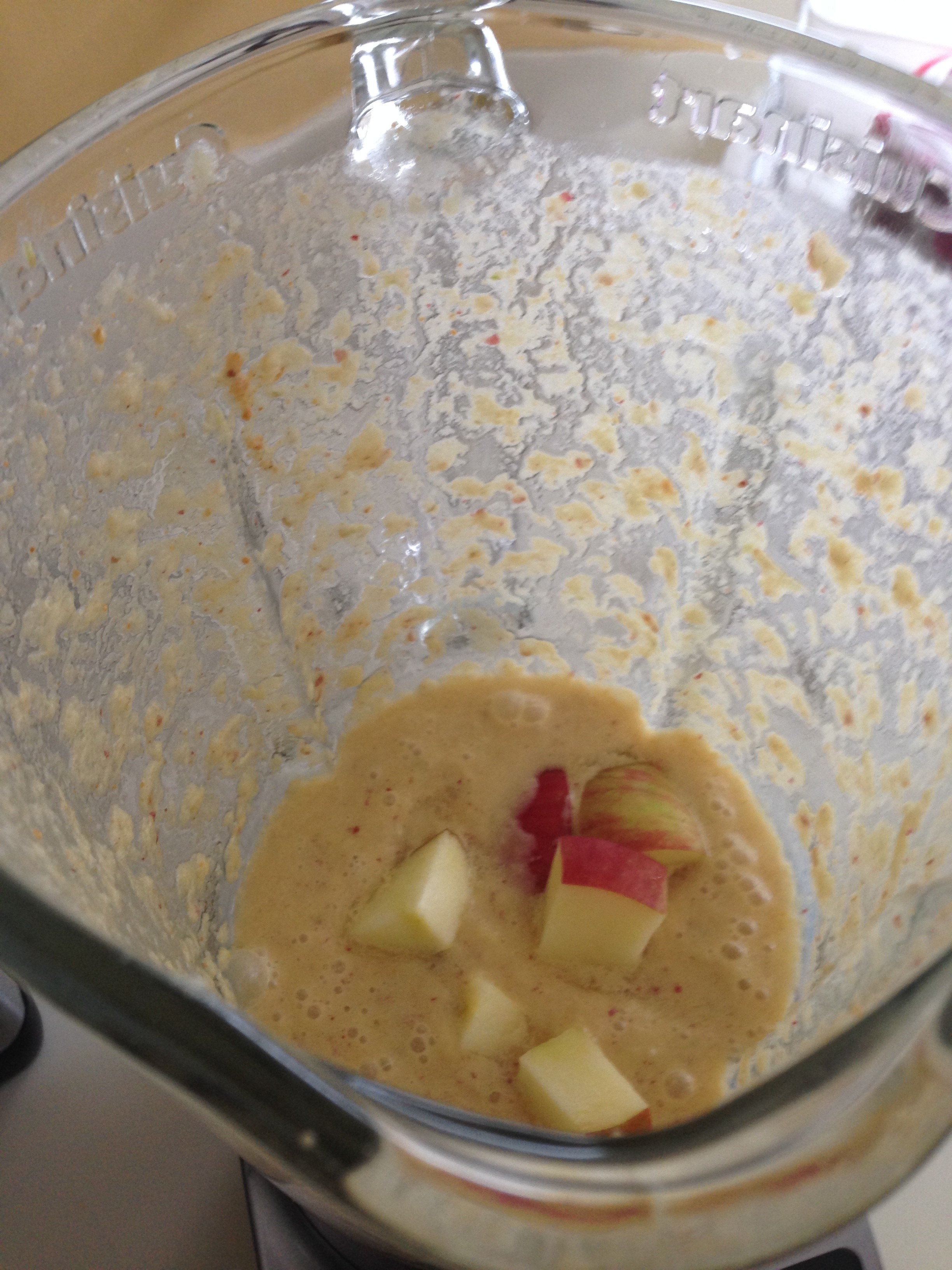2. Chop the apple into medium chunks, add to the blender. Blend.