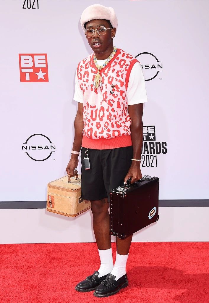 Tyler is no stranger to serving with his very own fashion line “GOLF WANG” being a side business to his rap career. Often dripped out in pastels, mohair and some statement hat, Tyler gives off a more whimsical picture than his lyrics may paint. His playful, boyish style embraces both fun and function, with sometimes showing a Boy Scout-ish aesthetic.