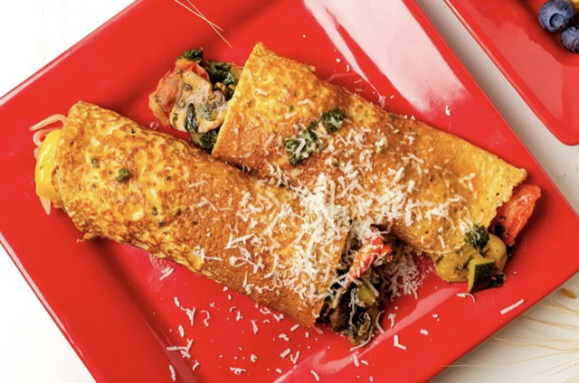 You can’t go wrong with this savory crepe as it has all the veggies you could possibly ever want!
