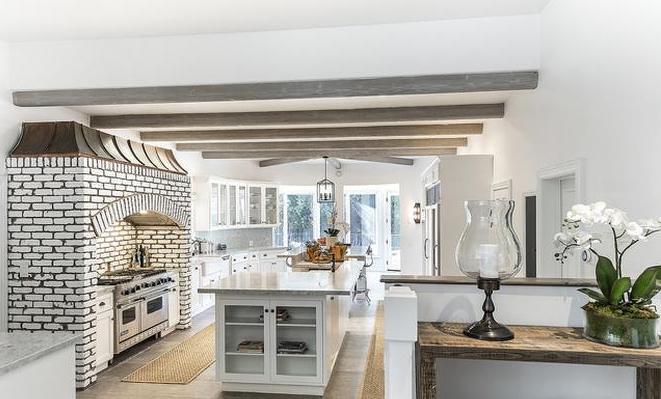 The gorgeous home sold for $23.95 million. The entryway has 33-foot ceilings and stunning views of the canyons in California. Outside lies a heated saltwater pool, a wood-fired oven, a massive walk-in closet and glam room, as well as a balcony for all seven bedrooms.