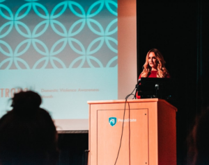 In an exclusive with VALLEY, Armstrong revealed that she loves giving these talks at colleges because the audience can absorb this information at such a pivotal time in their lives. Armstrong says that college may be a potential victim’s “first opportunity to make decisions on their own” regarding their relationships and “it is important to understand and look out for red flags.”