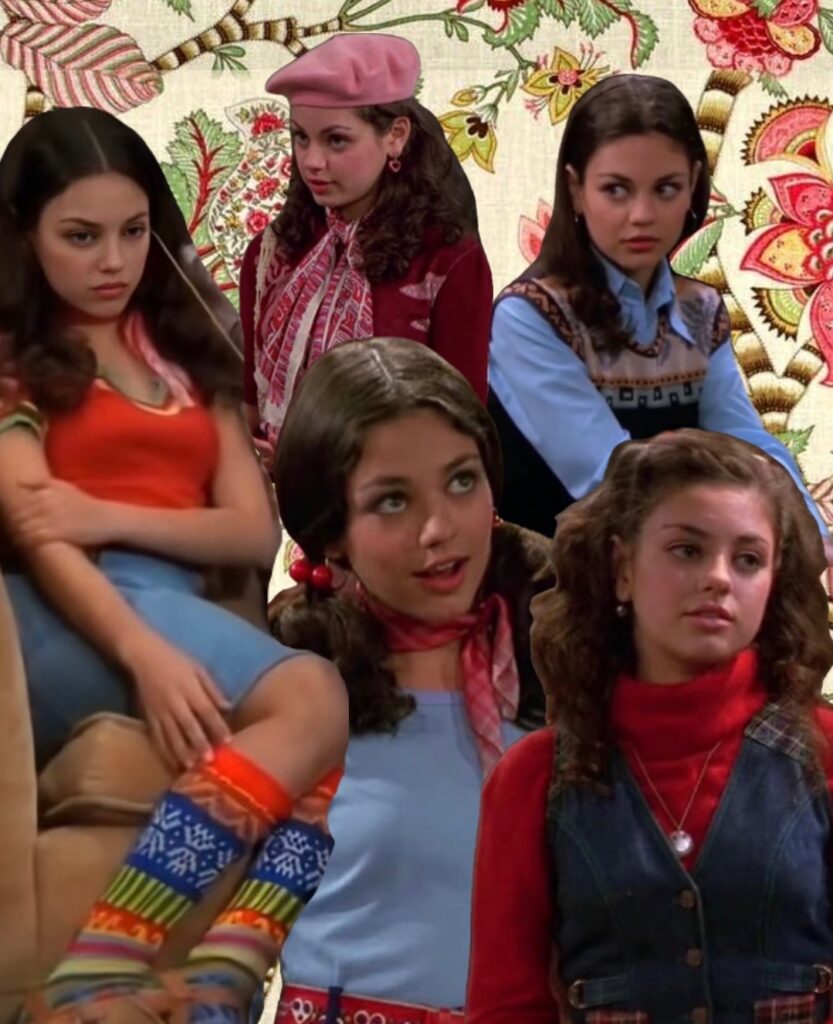 Jackie’s looks especially stand out in these earlier seasons, as she’s always overdressed in comparison to the rest of the group. While all of her coordinating accessories of the ’70s assemble adorable ensembles, they also serve to isolate her as a true member of the group. As Jackie grows up and into the friend group, we see a shift away from the elaborate hairstyles and more extravagant accessories like knee socks or ribbons in her hair.