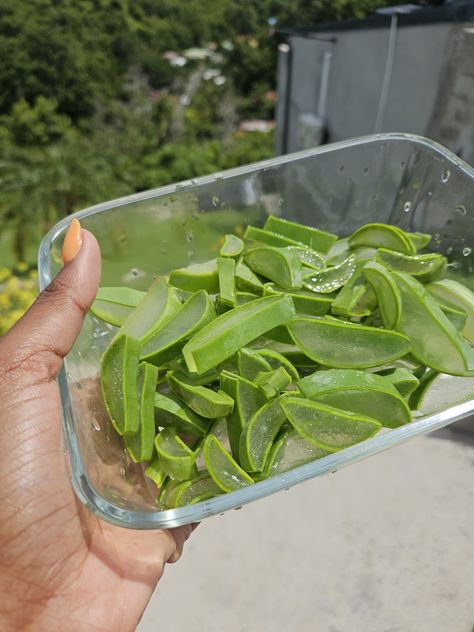 Listen, we know those neon green Aloe gels on store shelves look fun, but true Aloe is colorless. To make your own from the comfort of your own home, grab an Aloe leaf from your local grocery and:
