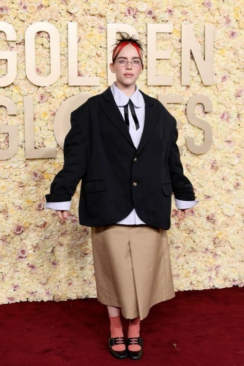 When Billie Eilish was first on the rise, her red carpet looks became synonymous with her oversized and baggy wear, which some critics condemned, while others praised her for not fitting in with sexist norms.