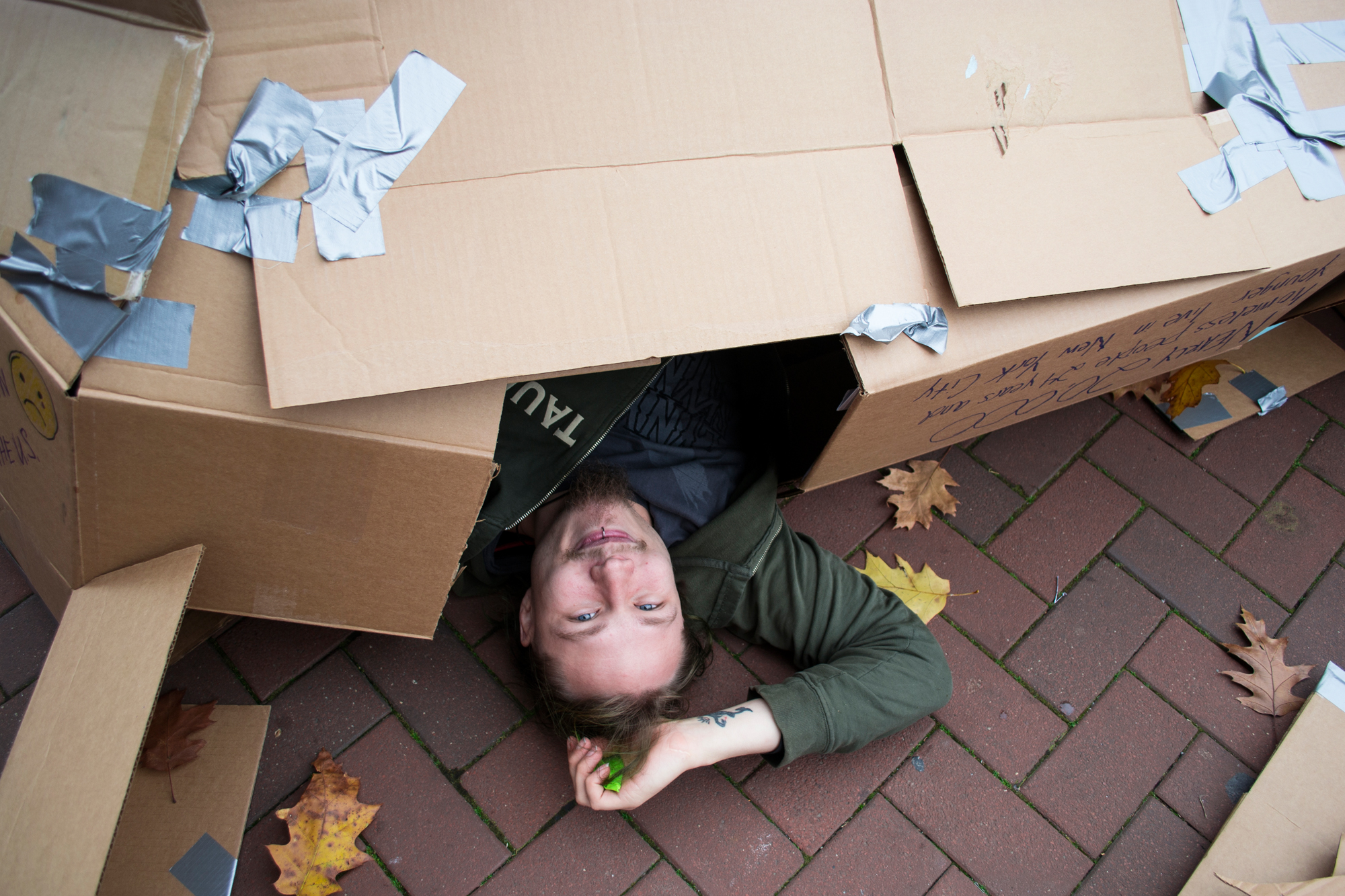 “Most people put belongings in boxes, but homeless people don’t have many belongings, so they use them to build houses,” Terrell adds.