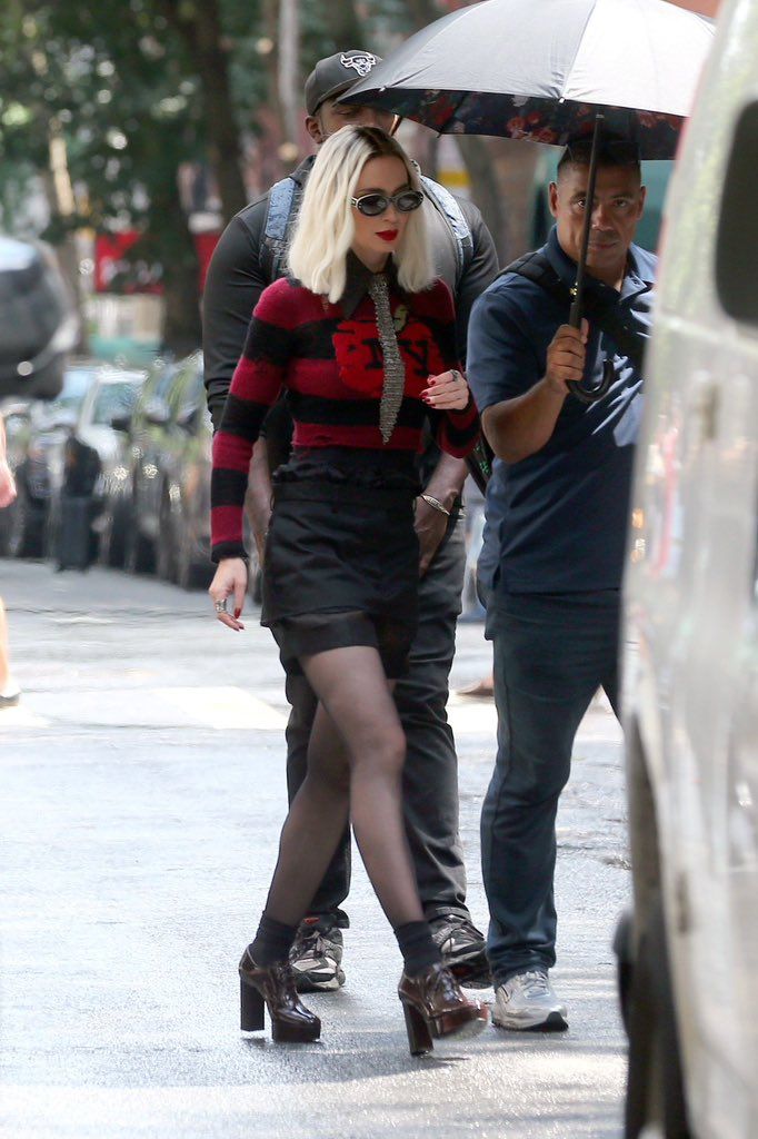 Emily, Blunt in real life and Charlton in the film, also got a style update. Long gone are her red locks, with platinum blonde taking over her hair. For accessories, she’s wearing black Dior sunglasses and maroon Gianvito Rossi heels. Her 2000s emo-esque Coach sweater matches well with her black Maison Margiela skirt.