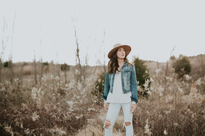 One way to bring a unique touch to an outfit is to just wear a black, grey, or colored pair of jeans with a jean jacket to add a subtle touch with room to experiment. This is more of a practice for people who want to see if they can pull off the look; for those who are just dipping their toe in. Another option that adds a nice touch is using jeans that have rips in them or fringe on the ends that add something unique and breaks up the blue.