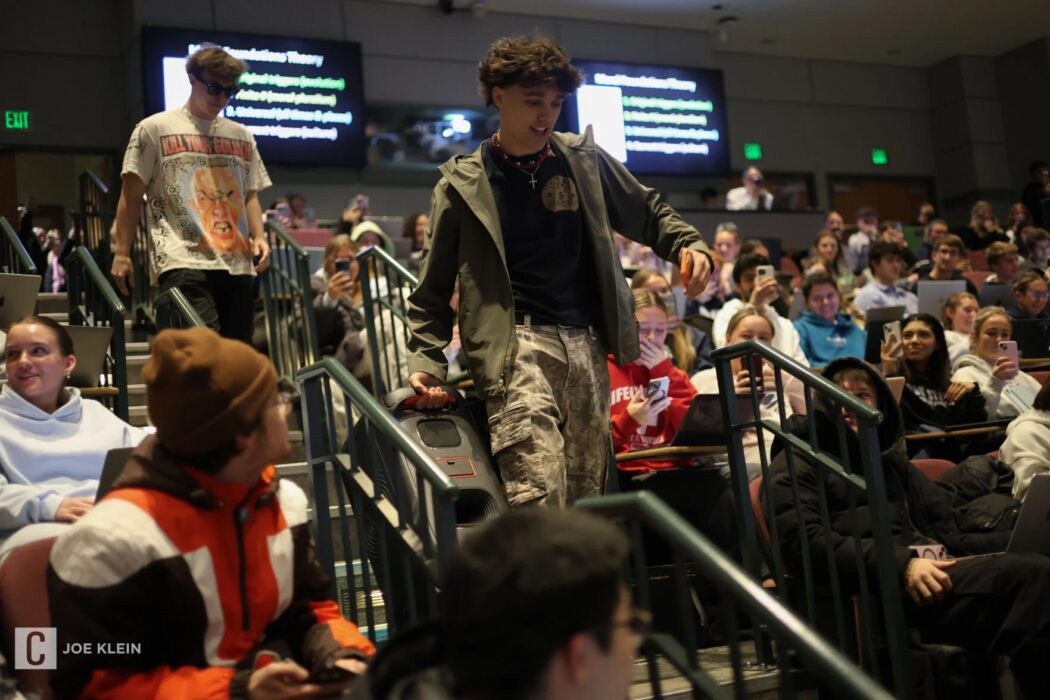 Not long after, JBL Speaker Kid graced Professor Silver’s class again, but this time, with karaoke. As Bon Jovi’s “Don’t Stop Believin’” played, the two sang a duet. Most students enjoyed it. When the song ended, Professor Silver turned this disruption into a teaching opportunity. He interviewed the JBL Speaker Kid, now identified as Tyler, asking why he pulls these stunts and what he thinks about those who disapprove. Tyler responded with, “There is a lot of bad things happening, and I think it is important to bring more positivity into the world.” The class cheered their agreement. Professor Silver was glad to tie the moment back to his course material, turning chaos into a teachable lesson.