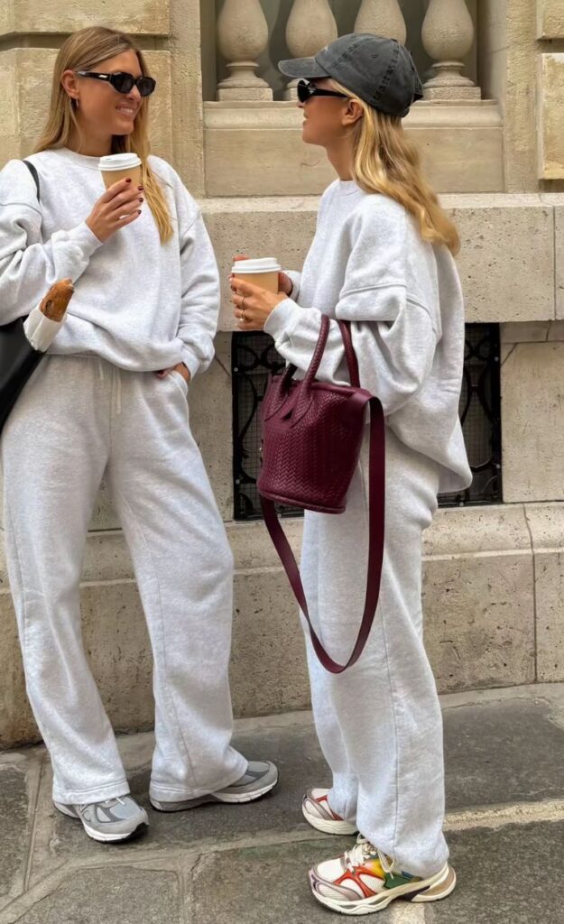 Another formula that never fails is matching set + casual shoe. Whether it’s knit, linen or a loungeset, pairing it with sneakers or simple shoes instantly tones it down. It keeps the look from feeling too put together while still looking intentional. It’s like you have your life together, but you are not trying too hard to prove it.