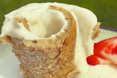 - While the cinnamon roll is cooking on the pan, take your Greek yogurt, protein powder and cinnamon and mix them together in a bowl. Feel free to add some honey if you want your icing a little sweeter.