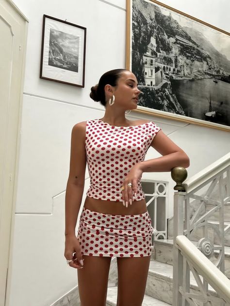 Matching sets remain a fashion favorite and polka dot sets are quickly becoming a must-have among shoppers today. Whether it is loungewear or a more refined set, they can be dressed up or down for any occasion. These sets usually include mini skirts, maxi skirts or shorts.