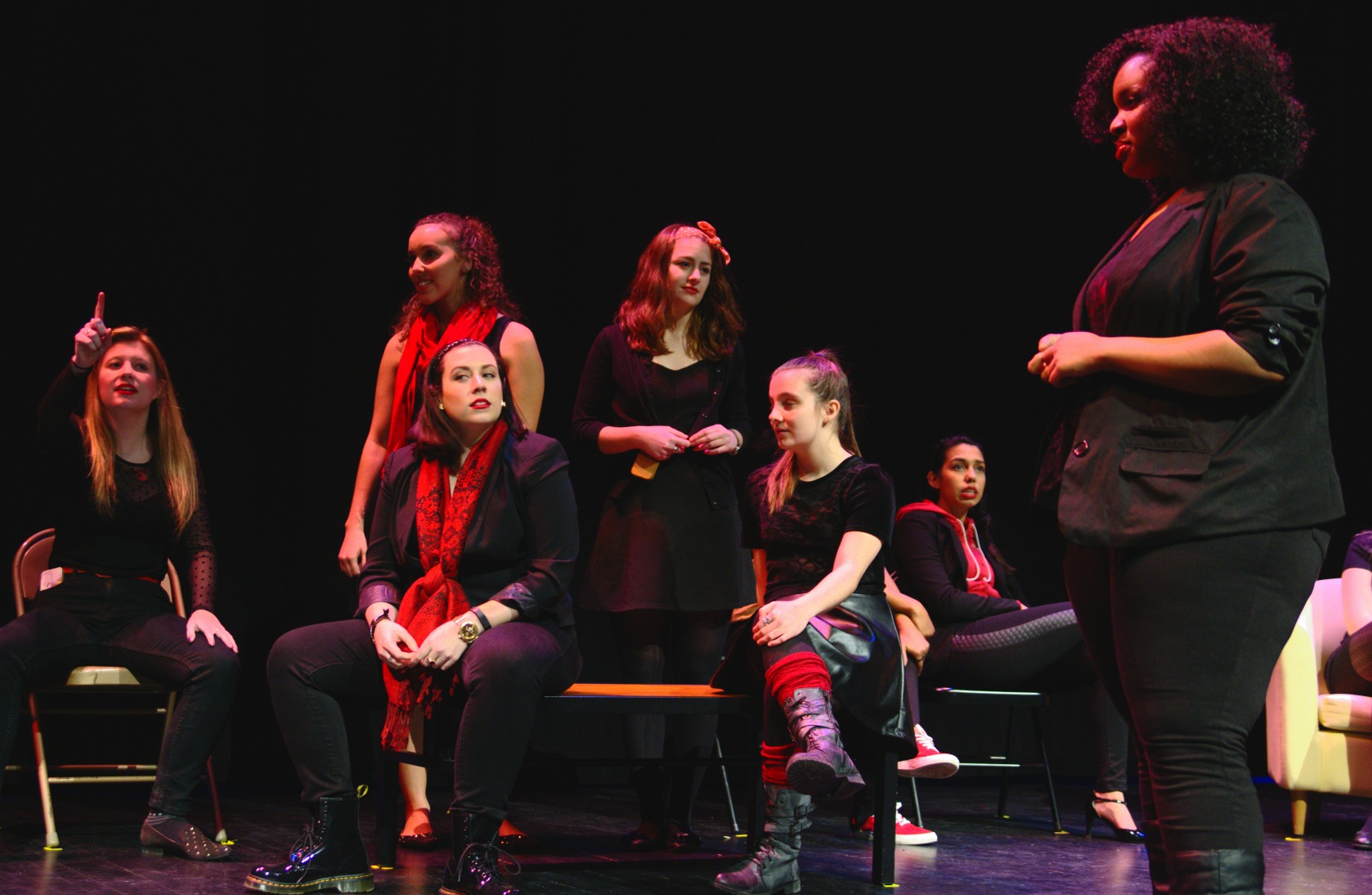 Kathryn Lodwick, a first-time cast member and theatre major, said the toughest part of acting in the play was “saying sexual things on stage in front of people.” She said, “You don’t say these things in public. Being on stage with a microphone […] describing a vagina can be embarrassing.”
