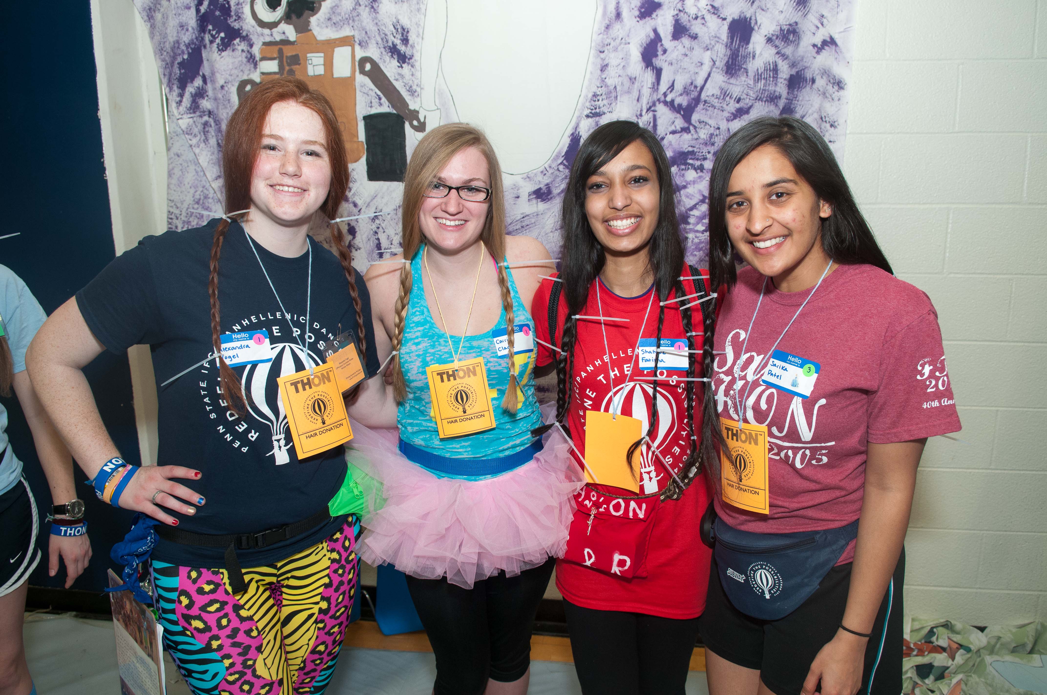 Want to donate your locks to THON? Your hair has to be a minimum of 12 inches long (12 inches when straightened for curly hair and 12 inches when measured from the shortest layer for layered hair). Also, your hair shouldn’t be color-treated, permed or highlighted (temporary highlights and coloring are acceptable).