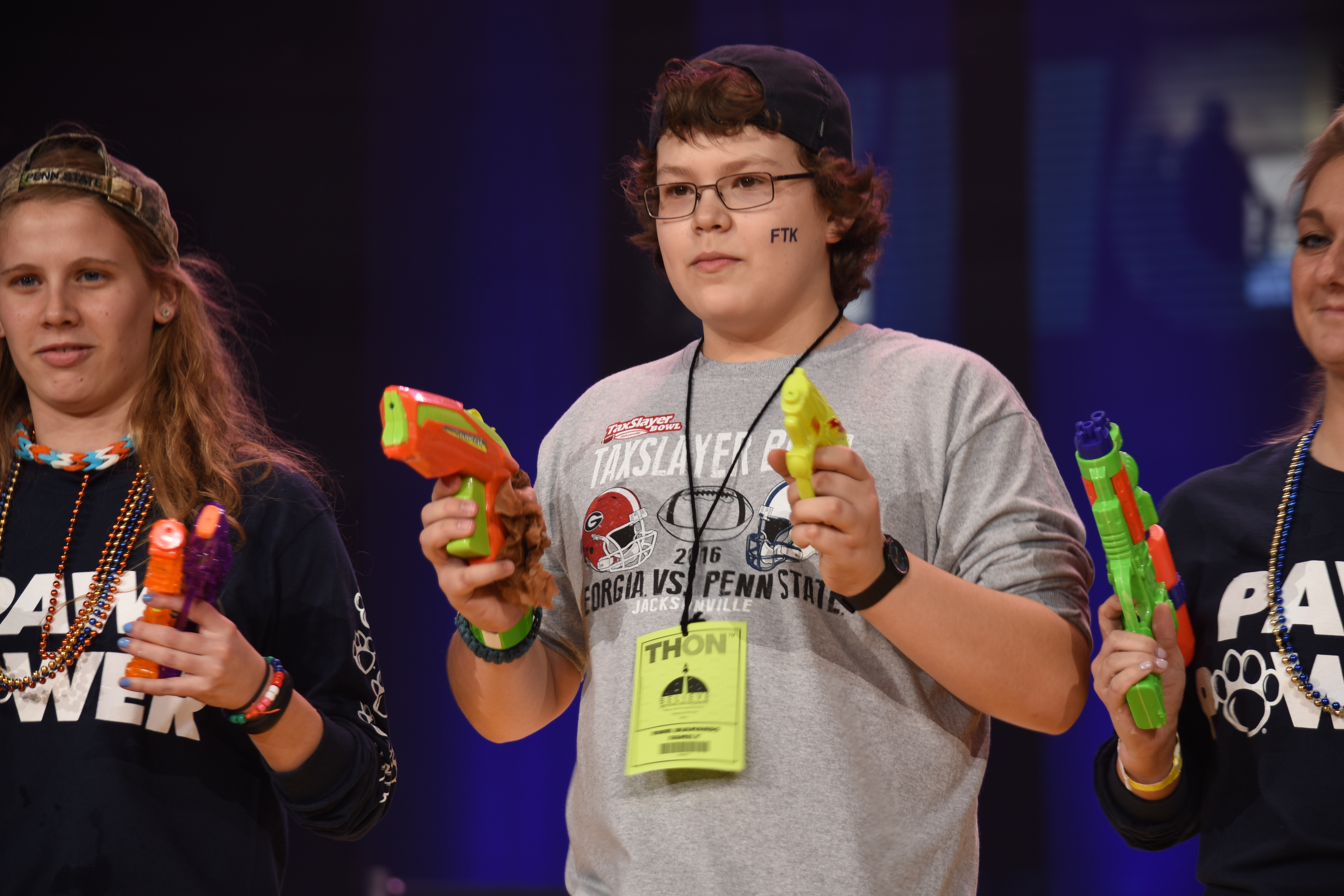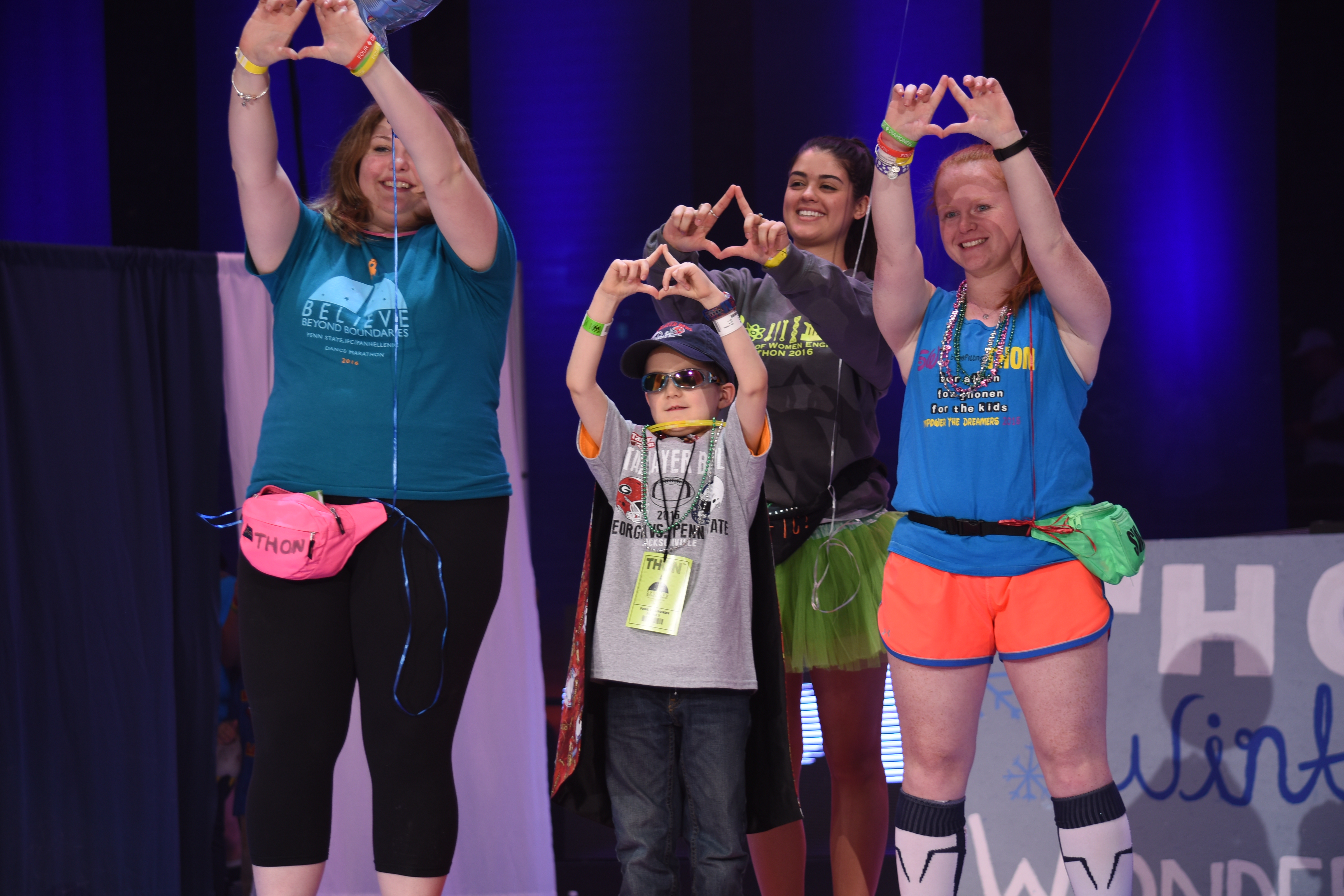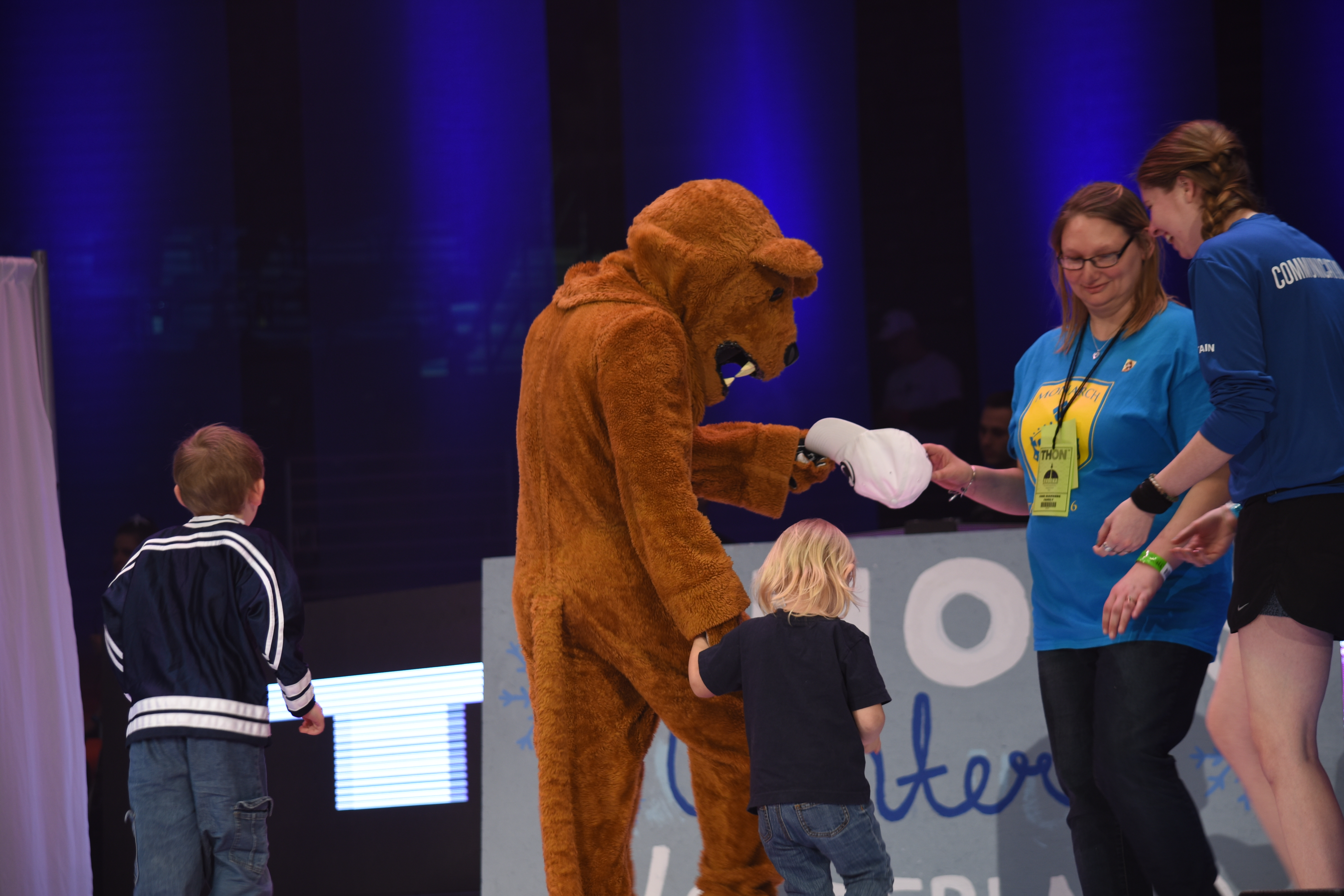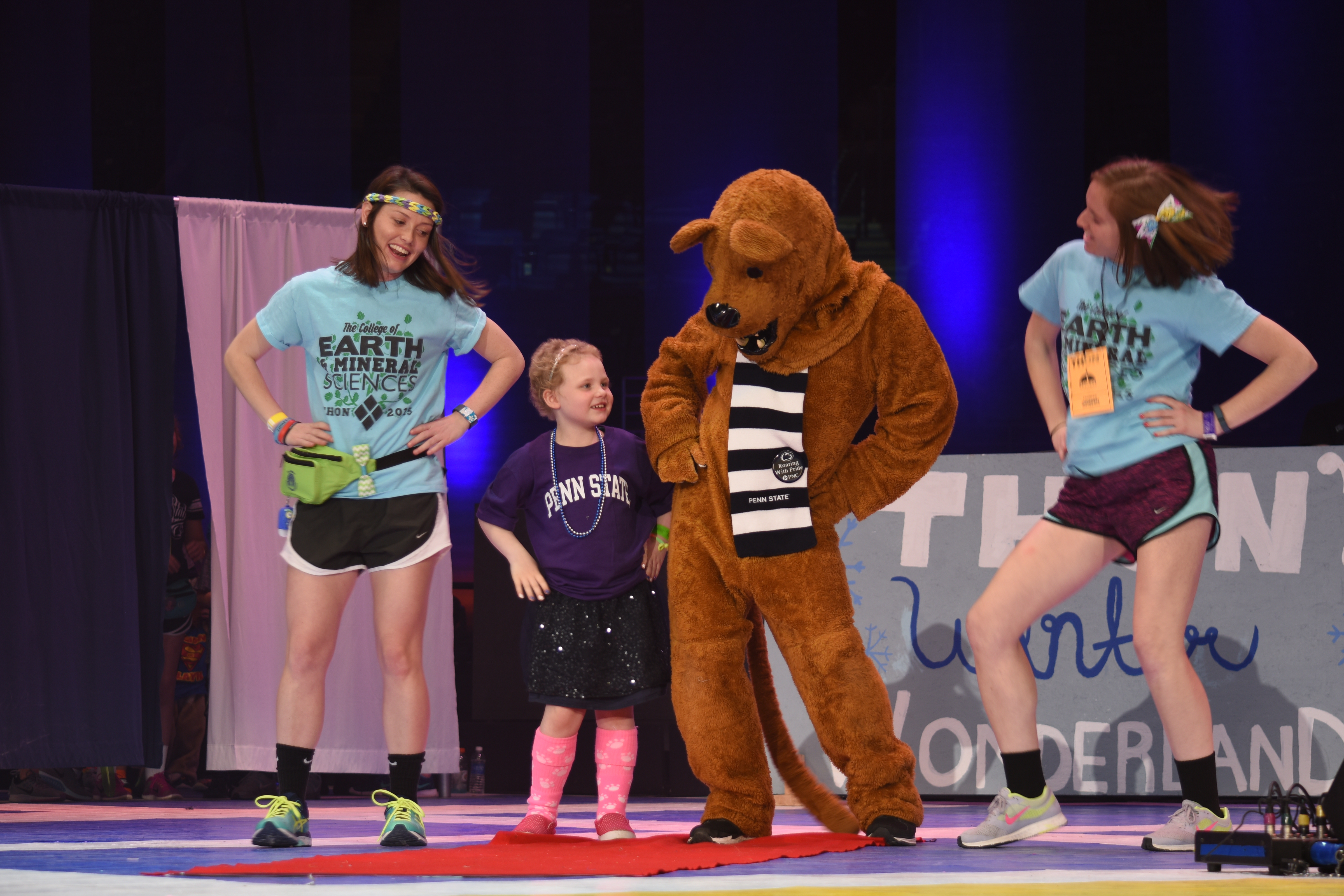 Every year, THON hosts a fashion show for the Four Diamonds children, giving them a chance to strut their stuff for the BJC. This year’s theme was THON’s Winter Wonderland and the stage was decked out with an icy blue banner plus a tiny red carpet. Each child was announced by name and shared a fun fact about their hobbies while striking a pose with family members and THON volunteers.