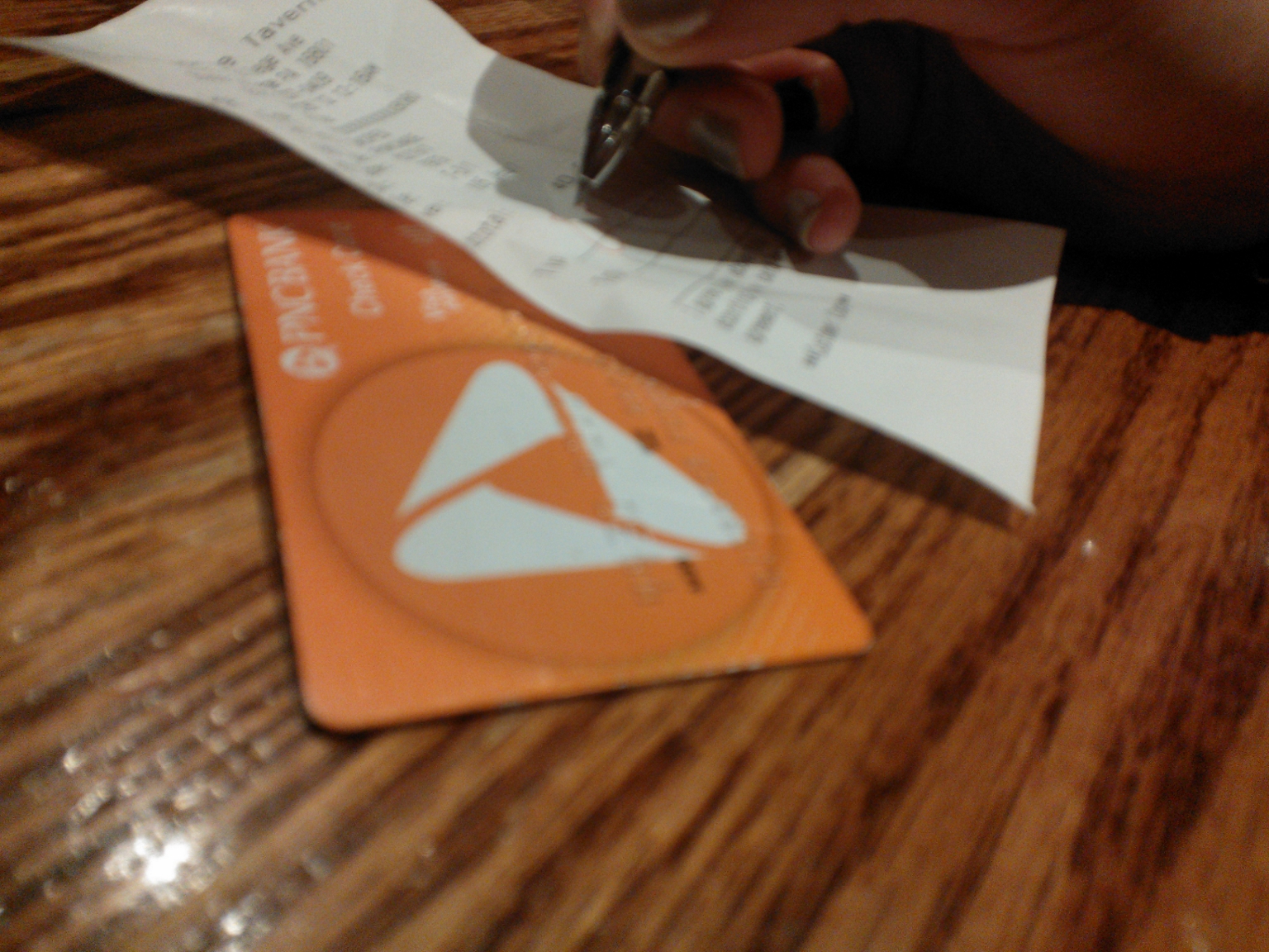 KF: Has anyone written anything funny on a receipt instead of tipping?