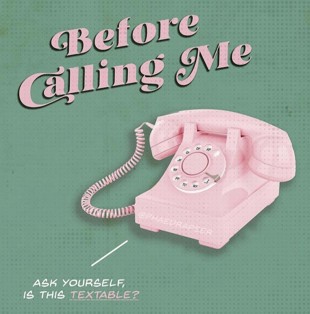 Before recording a voice note ask yourself, could this be a text? If you’re leaning towards yes just send the text. You have to weigh your convenience vs your recipients. If it’s easier for you to send a voice note in response to a text but all you have to say is “Yes, that’s good for me,” or “What about Tuesday,” do not send it. Just wait until you can text. And if your voice note starts approaching the 5-minute mark, please just wait until they can talk over call or Facetime. You may think this is easier but your friend has probably stopped listening.